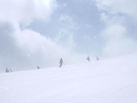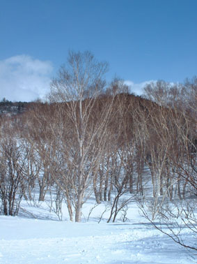 そしてスキーが枝に引っかかり雪を落とし首筋に冷たい洗礼は針葉樹と笑いの中に山頂を目指す
