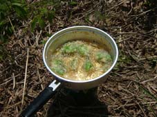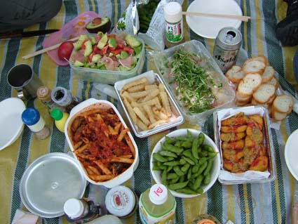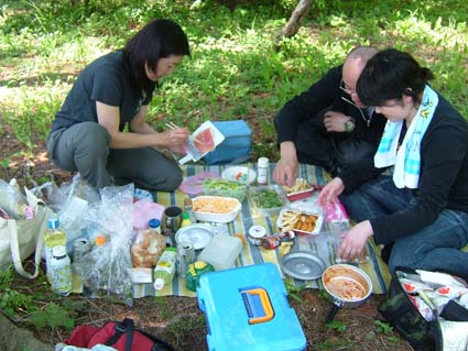 ![]() 登山道を彩る山草(一面に咲いていました) ![]() 登山口にて(SEI・Yuukariさん・ごんぞうさん・Zenさん) 杉林とアセビの木が交互してる路 ![]() 山頂近くに成ると木々の間から日差しがこぼれる 不思議な形の大きな根 山頂のやぐら ![]() 広い山頂 山頂の祠 やぐらが二つ ![]() 山頂に群生してるスズラン? 宴会の準備 ![]() 幹事ごんぞうさんの料理 コシアブラの天ぷら 山頂で採れたワラビ 『真鯛のカルパッチョ・生ハムの野菜サラダ・ナス入りトマトソースのペンネ・ガーリックパン』