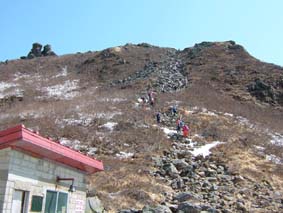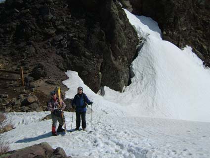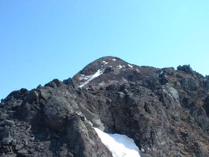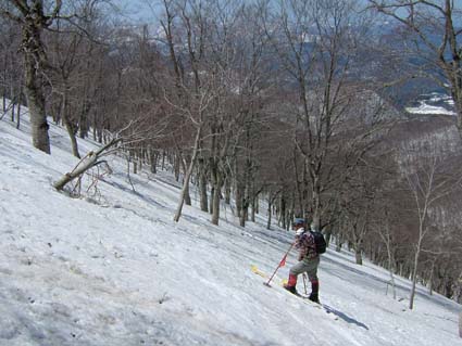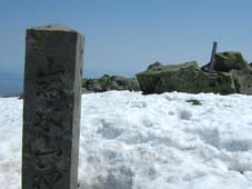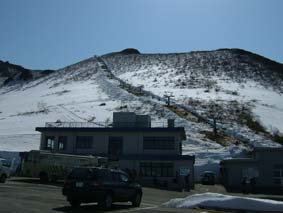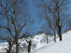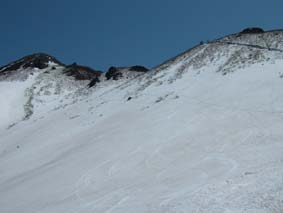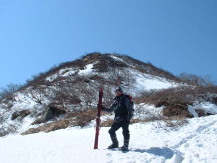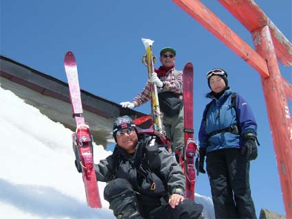 ![]() 岩 木 山 ![]() 春スキーバス 8合目駐車場 駐車場にて(Nabeちゃん〜ごんぞうさん〜SEI) ![]() 山頂へのルート ![]() 岩木山のピーク 滑降開始位置にてSEI ![]() 山頂神社にて 奥に白い峰(白神岳)〜山頂の鐘 ![]() 稜線越しに日本海を望む 山頂の碑 滑降斜面 ![]() 山頂より八甲田山 ![]() 滑り降りたルートの景観 岩木山スカイライン駐車場に深夜到着 テントにて軽く前夜祭(二時間位かな?)を楽しんだ 朝日に照らされて起床 寒さで熟睡は出来なかったSEI目覚めが悪い 朝食を流し込み出発の準備 バス停にはスキーを担いだ姿が多く見られ春スキーバスになだれ込む スカイラインの壁はさほど高くはない ブナ林の中を走る車窓からは高度を上げ変わる景色を楽しめた 20分程で8合目に到着 駐車場から白い峰(白神岳)が際だつ眼下に広がる日本海 見上げれば岩木山のピークが 手が届く様に迫る迫力 9合目まで行くためのリフトが動き登山者を運ぶ! リフト終点には休憩のための建物があり後方には鳥海山1502mが連なる ここから滑降開始する姿が多い 私たちは山頂を目指し岩場を登る 風で飛ばされたのか稜線には残雪が見られない 30分程でピークに着いた 山頂は広く神社が奉られ隣には綺麗な三角の建物に鐘が納められていた 360度の展望を感激の渦に酔いしれ山頂を後にした 山頂より50m位下り滑降開始 無木立の急斜面を滑る醍醐味は格別だ 下方に見える駐車場を目標に下る 気持ちがいい風を切り走る ザラメの雪面に板が喜んでるようだ! 思うように板が回る しばらくぶりの感触に 思わず叫ぶ ”ヤッホー” 気持ちいい ” ホーホー ” 弾む心を抑えることが出来なかった 駐車場の北側にコースを取り高度を下げる 振り返ると岩木山のピークがどんどん離れていく 西法事森〜追子森〜黒森の雪景色の変化が楽しめるコースに満足の滑降でした 駐車場に着いた私たちは晴天の下で昼食を取り八甲田山へ向かう 初めての岩木山に思い出を頂き 来年も必ず来ますと心で呟いた・・・・SEI 八甲田山への移動道中は北上した桜の歓迎を受け まだつぼみの桜も多く見られる青森の春を堪能できました 明日から八甲田山に突入 Nabeちゃん ごんぞうさん 楽しむべない ・・・SEI・・・ 戻 る |