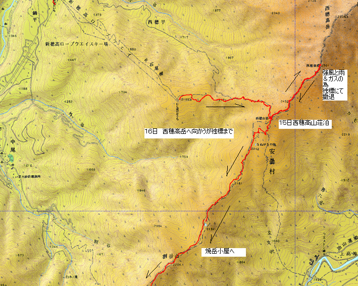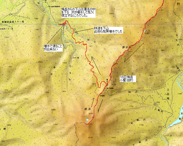 16日 山荘より独標まで1時間10分〜 下山(山荘まで) 45分 〜 焼岳小屋まで 2時間25分(小屋泊まり)