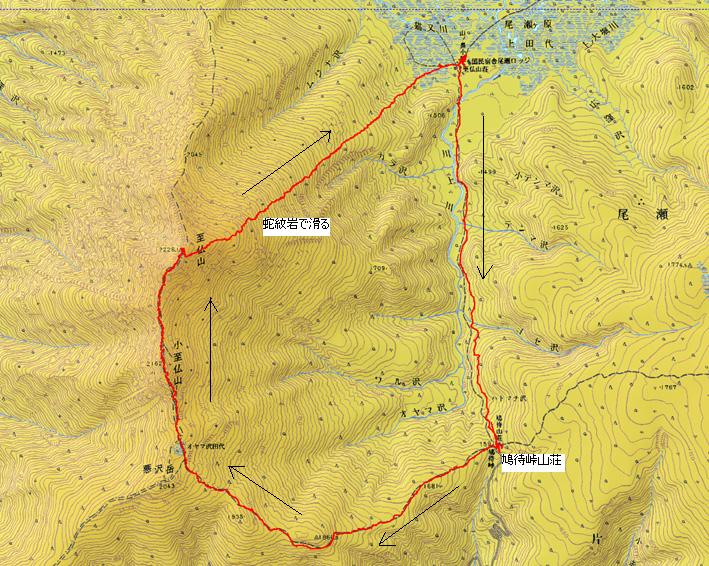 今回のコース 戻 る 鳩待峠 AM7:15 〜 オヤマ沢 AM8:40 〜 小至仏山 AM9:33 〜 至仏山 AM10:30 (休憩 11:00まで) ~〜 山の鼻 PM1:00 (休憩50分間) 〜 山の鼻小屋 PM1:50分 〜 鳩待峠 PM2:45 〜 タクシーにて駐車場へ