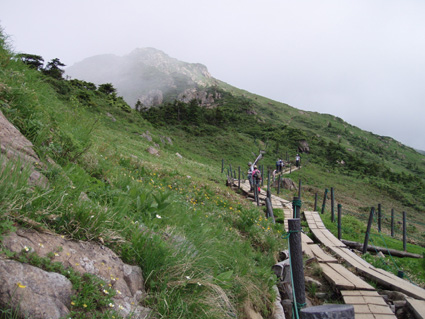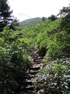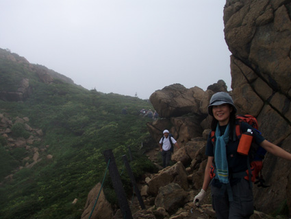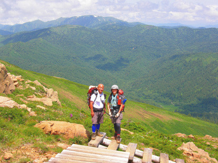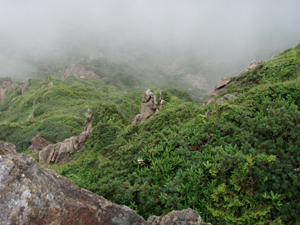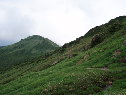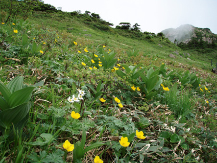 ![]() 鳩待峠休憩所 登山口(Soneさん SEI ごんちゃん) 登山道 ![]() 小至仏山 オゼソウ 分岐 ミヤマダイモンジソウ ![]() 笠が岳の分岐 杢道 コメツツジ ![]() イブキジャコウソウ 斜面に咲くお花畑(奥に見えるのは小至仏山 ![]() ![]() ![]() ガレ場 ベニサラサドウダン 蛇紋岩の上にSoneさん ![]() 切れ落ちたガレ場を進む コバギボウシ 至仏山西側斜面のガレ場 ![]() 山頂にて(ごんぞうさん・SEI・Soneさん) 下山路の稜線越しに小至仏山 ![]() 平ヶ岳を背景に シブツアサツキ ![]() 雪渓を抱く平ヶ岳 タカネナデシコ 尾瀬ヶ原を背景に(^O^) ![]() ネバリノギラン 下山路を振り返る ミヤマシュロソウ 山の鼻田代のニッコウキスゲ ![]() 山の鼻田代 (水面に浮くヒツジグサ) ホソバツメクサ 山の鼻小屋 ![]() 山の鼻田代分岐 シロバナトウウチソウ ![]() ![]() ![]() ![]() ![]() ジョウシュウアズマギク ミネウスユキソウ ヒメシャジン トキソウ ワタスゲ 梅雨空け宣言が出ない東北地方 天気予報を探り比較的天気が安定してる群馬県鳩待峠より至仏山に来ました 戸倉駐車場に車を止めてマイカー規制区域をタクシーで移動 鳩待峠へ 既に多くの登山者やハイカーが賑やかだ 合流予定のSoneさんは福島県側の 御池より7時間のコース(御池〜燧裏林道〜尾瀬ヶ原〜山の鼻〜鳩待峠)を4時間で到着した 小休憩後オヤマ沢田代方面から至仏山を目指し登る 道中は咲き競うお花の彩りに目を奪われた ガスが架かる山肌は視界がなく足下のお花さんがお相手してくれました 笠ヶ岳分岐を過ぎるとガスを吐き出すように山が動く 次第に山容が現れ蛇紋岩の荒々しい肌が露出する 燧ヶ岳より眺めていた穏やかな至仏山とは異なり 雄々しい姿に瞬きも惜しみ酔いしれる 斜面に花 足下に花 岩の間からひょっこりと花 咲き乱れる花 花々の競演とは正にこの様である 初めて見る花も多く(名前はご勘弁下さい)Soneさんの花ガイドに聞き耳を立てた あ〜〜そうそう ん〜〜 へ〜〜 と花の名前を教えて頂くが二歩歩くと忘れるSEIでした・・・(笑) 小至仏山は大勢の登山者の為通過する 稜線上を覆うガスが意地悪して動かない為 ピークを望むことが出来ないが 2228.1mの山頂のどよめきがガスを振動させ聞こえる もうすぐ山頂! 山頂は駅前広場の様な人混みだ 梅雨空けを待ちくたびれた登山者が大波に打ち寄せられたのだろう 笑顔に満ちあふれ 歓声を上げ 展望を楽しむ様子は正に天国に導かれた絵模様でした 下部の空間を見つけ下りる 昼食にしようと ごんぞうさんのザックから鴨肉の薫製を取り出す SEIがガスコンロで焼くとモクモクと香り付きの煙が上がる 上の方から声が「何を焼いてるの?」する 鴨肉ですとSoneさん ”美味しそう”と返事が どうぞ宜しければと女性には優しいSEIがお肉を手渡しました・・・ 込み合う山頂を30分ほどで後にする 下山は燧ヶ岳・平ヶ岳・白根山・越後三山などを確認できた 眼下には尾瀬ヶ原や山の鼻小屋〜尾瀬に描かれた杢道の道しるべが走る どこまでも緑の絨毯 森の屏風で区切られた湿原 尾瀬の広大な自然に溶け込み!鳥のように宙を舞う心に! 蛇紋岩の下りは気が抜けない 乾いた岩でも滑る急勾配 下山は全身から溢れる汗の滝が登場 太陽の光もチョット悪戯かギラギラと照りつけた。 勾配も緩くなり山の鼻田代の分岐に出た 小屋の屋根も見え生ビールの手招きで歩くテンポも早くなる 小屋の正面には生ビールありますの看板を見つけ吸い込まれる様に中に入る面々 「すみません 生ビール下さい」 お新香をつまみに2杯目のお代わり じりじりと喉を冷やすビールに感無量の時が流れる 楽しい一時を過ごしたSoneさんは道を分かれ御池に足を運ぶ長い道中にも関わらず元気な姿を後にした ごんぞうさんとSEIは山の鼻から鳩待峠へ50分程で到着しタクシーに乗り込み戸倉駐車場に着いた 駐車場隣に在るホテルで入浴(¥500でタオル付き安い)帰路に就きました Soneさん ごんぞうさん青空の中の至仏山は最高でした ありがとう 尾瀬の自然に誘われて ・・・SEI・・・ 戻 る |