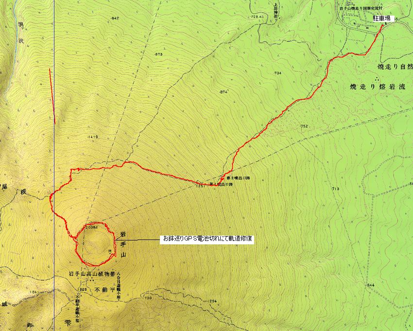 今回のコース 焼走り登山口 AM7:00 〜 第二噴出口 〜 コマクサ群生地 〜 ツルハシ分岐 〜 平笠不動避難小屋 〜 山頂 AM 11:45 〜 お鉢めぐり 下山 PM 12:20 〜 平笠不動避難小屋(昼食) 〜 ツルハシ分岐 PM2:37 〜 第二噴出口 PM 3:13 〜 焼走り登山口 PM 4:00