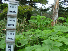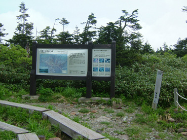 避難小屋と八幡沼 コース案内板 頂上で〜す (^O^)