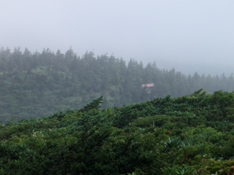 杉ヶ峰避難小屋(赤い屋根) ミヤマシャジン 道標