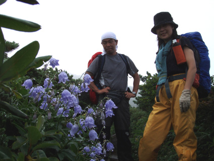 稜線の道を追うとクルマ百合の可憐な姿が大岩の足下に咲き シャジンの紫が作り上げる画面は
