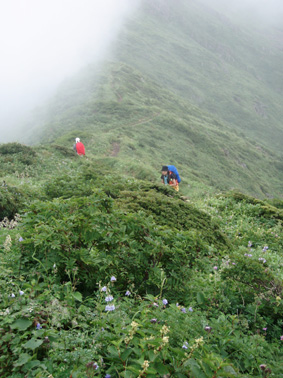 南屏風岳からの下りは花々の咲き乱れる山肌に目を奪われた