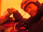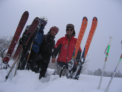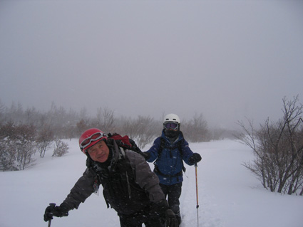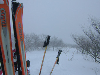 ![]() ゲレンデTOPより登り〜鉄塔まで辿り着く ![]() 膝まで潜りラッセルする ( Oさん・ごんちゃん・SEIは後方をご免なさい ) 太陽がのぞき見! ![]() ![]() ツェルトで休憩 ![]() ![]() 雪の中で( ごんちゃん・Oさん・SEI ) ![]() 山頂の雪をかき分けて道標を出しました・・・・(埋まっていた道標) ”展望なし” ![]() 山頂で記念写真 (茨城のOさん ・ SEI ・ ごんちゃん ) ![]() 小雪〜時々強風の山頂 Oさんが雪と戯れる 2006年の山がスタートした 登り始めは鎌房山 羽鳥スキー場までの道中は吹雪いている リフトが動かないときはゲレンデを歩いて登ろうか??そんな話をしての車中でした スキー場の駐車場に着いた相変わらずの吹雪 スキーヤーも少ないのか駐車してる車がまばらだ リフト券を購入ゲレンデに行くと目に入る光景は この吹雪の中を雪まみれになり滑る人 コタツの中でテレビでも見てれば良いのに・・・独り言です メットとゴーグルの隙間から出てる顔の一部が冷たい 今日は止めようか・・・独り言です ぶつぶつと独り言が多くなるSEIでした・・・笑 ゲレンデTOPから灌木林の間をすすむ 新雪が1m近くあるのか膝まで潜る 雪が意外と重く歩きにくい さらさらの雪を想像していただけに想定外・残念!! 先行のラッセルは茨城からきましたOさん 力強い踏み込み笑顔の余力で逞しく雪上にトレースを残す 次にごんちゃん SEIがしんがりで歩く姿は殆ど変わらない 雪と強風 時々吹く強い風に煽られ体がよろめく・・・・今年も天候には恵まれないのか不安になる登り始めに成りました 途中休憩はツェルトの中 強風にも関わらず中は温かく天国です バタバタとツェルトの風に煽られる音がBGMに早変わり 雑音?に近いBGMを聞きながら体を中から温めようと日本酒で乾杯しました 休まず山頂を目指し進む逞しい姿はOさん 有り難いトレースを盗み山頂にたどり着きました 山頂到着は13:30登り始めてから2時間10分経過 Oさんのラッセルが無かったらまだまだ着かなかった鎌房山頂でした 山頂は小雪と風 写真を撮り下山することにする Oさんは雪と戯れ雪穴を掘る 寒風の雪原で笑顔のOさんの姿は山男の勇壮にも映り感激しました Oさん短い時間でしたが有り難うございました 下山は重い雪でスキーが走らず殆ど歩きと同じだ 数カ所の斜面を板がようやく動いてくれた ホーと喜びの声を出す間もなく板が撃沈 雪に沈む・・・・・(*_*) 下山予定のコースを変えて登りと同じコースを下る 2006年初滑りでした 茨城のOさん ごんちゃん有り難うございました ・・・・SEI・・・・ ここからは大野さんから送って頂いた写真です ↓ 大野さん有り難うございます ![]() ![]() ![]() |