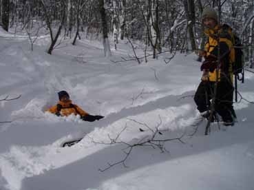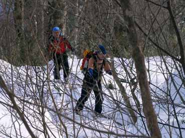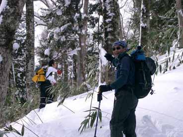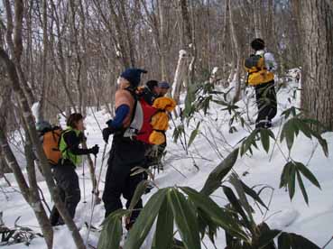 ![]() ブナ林を滑降 ![]() 待ち合わせの駐車場へ到着 いよいよ登り ![]() 春を思わせる気候 (青空の下で和むメンバー) ![]() 下りは難儀しそう(藪が) ![]() 標高を上げるほどに雪質が良くなる ![]() ガンガンとばす Iさん & HAMAさん あすなろの巨木? ![]() 新雪の飾りを纏うブナ林 休憩です(soigaさん Raccoさん) ![]() 急斜面でランチタイム これから滑降開始 ![]() Tさんのしなやかな滑り soigaさん華麗な滑り ![]() I さんの鮮やかな滑り HAMAさんの豪快な滑り ![]() 舞え上がる雪煙はRaccoさん 不器用な滑りのSEI ![]() お休みタイムの Tさん ![]() ラッセルを一人で完結してくれた Iさん Tさん(何みてんの〜〜お) 無事に下山(Raccoさん soigaさん) Raccoさんよりお誘いのMLを頂き二岐山に参上いたしました 待ち合わせの駐車場にはHAMAさん Iさん Tさんの姿が見える 後方に迫る黒いワンボックスカーをルームミラー越しに見つめるSEI 「もうだめだ追いつかれる・・今日が私の命日・・恐怖におののくSEIが震い上がる」 そして同じ駐車場に入って来ました。次回のテレマークツアーに続く 鋭い勘が(本当は鈍感)あたりましたRaccoさんとsoigaさんが登場です これで今日予定のメンバーが ??? あれ〜 たけさんが居ない (今日はたけさんお留守番とか・・次回に会いましょうね) 千葉・埼玉・福島の愉快なメンバーが勢揃い 銀世界の二岐山へと消えて行きました 静かな山あるきが大好きなRaccoさんとsoigaさん 吾妻山ツアーでご一緒させて頂いたHAMAさんとIさんとTさん 皆さん本当に元気です 最後尾をハーハー言いながら何とか付いて行くSEI 笹の藪を見つめ登り ブナ林の雪化粧に癒され メンバーの笑顔に元気を頂き一日を過ごす事が出来ました 皆さん本当にありがとうございました 戻る |
