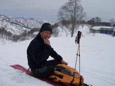 天候(曇り〜時々晴れ) 山スキー(姥ヶ岳のコルにて撤退)
