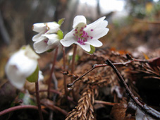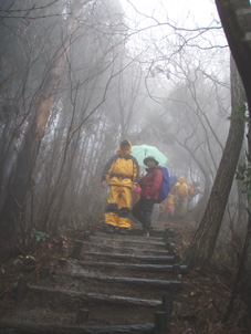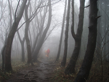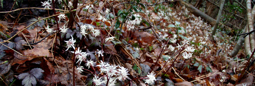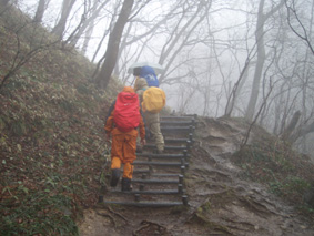 ![]() 山肌を飾るキクバオウレン ![]() 五ヶ峠の駐車場 ![]() ![]() ![]() ![]() ![]() ![]() オオミスミソウ (SONEさん提供) ![]() Zenさん・Yu−ちゃん・Gonちゃん・Sawaさん・穂高さん・Sakuraちゃん・Hasiさん・SONEさん 雨の登山道を進むメンバー ![]() カタクリの道 カタクリ 芽吹き始めた木々 ![]() (~o~) 木段の道でZen & Yu− ![]() 登山道にある東屋 どろんこの登山道 ![]() 三望小屋 山頂より北斜面に在る神社(観音堂) ![]() ![]() ![]() ![]() 神社の城戸を借りて昼食の面々 ![]() 山頂にある仏像の前で 雨上がりの登山道 ![]() 幻想的な稜線 ![]() ![]() ![]() アブラチャン エチゴネコノメ ナニワズ 山のお花と戯れる 五ヶ峠に在る神社 ![]() ![]() ![]() ![]() 福井山山頂で(Zenちゃん〜穂高さん〜Gonちゃん) ![]() ![]() お花街道を行く 今年初めてスキーを持たない山歩きを楽しむ 天気予報は雨・・・ 弥彦山を目ざし郡山を出た 新潟県の安田を通過して間もなくSONEさんから電話が入る ポケットの中の電話から・・・・・(けたたましいベルの音が響く) あわてて電話を取るSEI・・・・・(は〜い高速移動中です) SONEさんが・・・・・・(緊急連絡 今の位置をしらせよ) SEIが緊迫した表情で話す・・・・・(安田を通過した所です) 電話の向こうから悲鳴に似た声が・・・・(弥彦は大雨 角田山五ヶ峠に変更せよ) しばらくSONEさんとSEIのやりとりが続き山頂に小屋のある角田山に行くことになりました。 (*^_^*) 五ヶ峠の駐車場に着くと山小屋があり 係員と思われる男性が二名出てくる 雨の越後の山にようこそ来てくれました どろんこの道にがっかりしないで下さいと気遣う! 出発時には花の咲き具合を説明してくれ案内カードを手渡された 登山道はどろんこで滑り木の階段も慎重に歩く 山腹に咲く花に視線を奪われ雨が降ってる事も忘れ夢中でカメラを向けた 紫のカタクリを始め雪割草など小さな可憐な花は至る所に咲き始め春の訪れを告げる 冷たい雨の為 花も閉じてしまい弾けるような仕草を見ることは出来ないが色鮮やかな表情は心を躍らせた! 小さなピークを二回ほど繰り返し進むと山頂に着く 山頂の小屋はチョー満員で入室を拒まれる 仕方なく北へ200mほど下った所にある神社の軒下を借りることにした 神社には参拝者が頭を垂れる姿 身動ぎもしないで参拝する姿は何故か神々しく映りました 軒下借りて母屋ではないが神社の境内は我々の占拠地と化する 参拝者とSONEさんが意味深な話・・・何を話してたのか未だに謎だ 長〜い休憩が終わり下山する時がくる 軒を出ると あらら雨が止んでるではないか ガスが掛かり展望は無いが清々しい雨上がりだ 神社を後にして山頂へ行くと大勢の登山者が休んでる 私達が山頂へ来たときには小屋にしか居なかった登山者が どこから湧き出てきたのか・・・いや失礼・・・・ 登ってきたのか50名くらいは居たと思います その中に磐梯山に在る弘法清水小屋の管理人 Yさん達の姿も在った 私達は偶然の遭遇に話が弾みました。 雨上がりの登山道をるんるんと下る 時々滑り転けるような仕草に悲鳴も弾み日本海を震撼させる 山間から覗く海原は小さな波を刻み愛嬌をふりまき囁きかけてきました 五ヶ峠まで戻り花の山 福井山へ行くことにする 登山口の係員さんの話では雪割草やキクバオウレンが満開ですと案内してくれた そ〜〜れゆけ〜〜と 急斜面を登る すぐに緩斜面に変わると其処にはキクバオウレンが群生してる山肌が現れる 山頂では雪割草が一面に敷き詰められ鮮やかな色合いを醸しだし訪れる者を虜にする 弥彦山登山を急遽変更して角田山&福井山を訪れた雨の花山探索でした SONEさんHさん仙台からの長旅と案内有り難うございました 穂高さん・Gonちゃん・Sakuraちゃん・Sawaさん・Zenちゃん・Yu−ちゃん楽しい花旅有り難う! ・・・SEI・・・ 戻る |