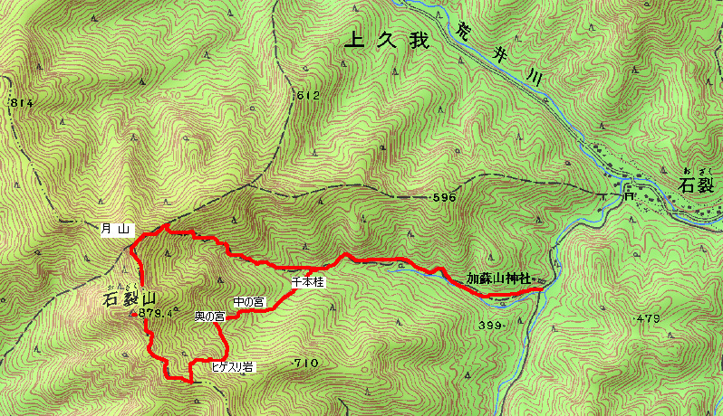 石裂(駐車場) AM8:30 〜 千本桂 〜 中の宮 〜 奥の宮 〜 石裂山 〜 山頂にて昼食(一時間くらいの休憩) 〜 月山 〜 駐車場 PM2:30 ※ GPSが不調にて時間詳細不明 (休憩を含めて6時間でした) 花と戯れ道草登山です 途中休憩多い。