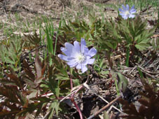 岩木山神社の前を通過した 神社の境内駐車場は満車で寄り道を拒むのでした 沿道に咲くキクザキイチゲを見つけ車は止まる