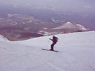 嶽コースを滑降 広がる展望 豪快に転倒した