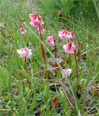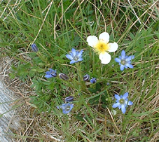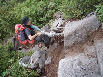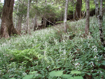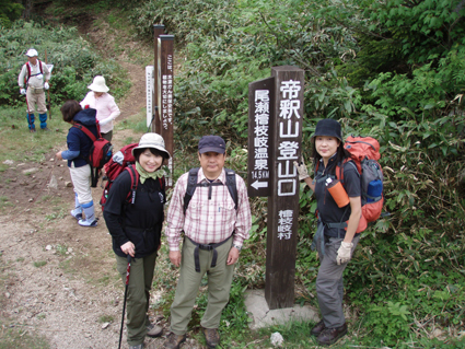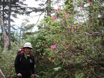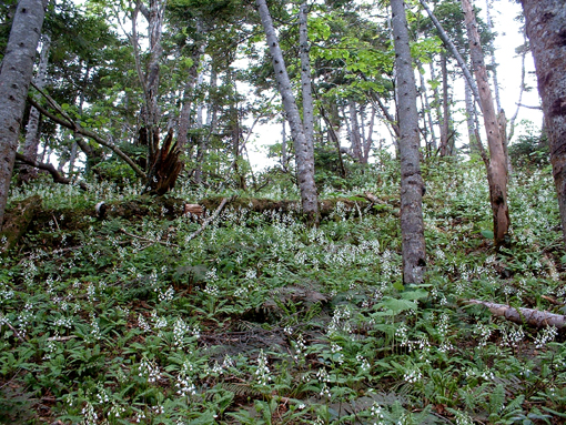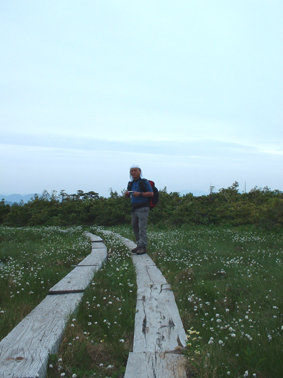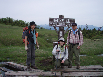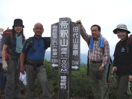 ![]() 田代湿原の花 オサバグサの探索に帝釈山〜田代山を訪れた 馬坂峠の登山口では地元の方からオサバグサ祭りの開催中ですと 記念品のバッチや地元の案内パンフレットを頂きました ![]() 馬坂峠登山口で(Yu−kariちゃん・穂高さん・Gonちゃん) オサバグサの群生 登山口は既に駐車スペースが満杯状態でギリギリ車を止めることが出来る 新しい林道に出来た登山口と聞くが 元々の林道を解放して出来た登山口の様です 道標も立派な物が立ち登山道も整備されて歩きやすい 登り初めて直ぐに木の階段になりオサバグサの群生が現れた 群生は山肌を一面埋め尽くし白の斜面に替える シダのような葉に伸びた茎からは鈴なりの花を付け一つ一つを見ると本当に清楚な可愛い花である ![]() 帝釈山山頂よりの展望 鶏頂山〜釈迦ヶ岳方面 女峰山〜大真名子〜小真名子山〜太郎山方面 峠より50分ぐらいで帝釈山山頂です 山頂は展望が良く輪郭がハッキリしないものの山々を望むことが出来た 栃木県や群馬県の見慣れた山や燧ヶ岳を始め福島の山々 そして越後の山と有視界を楽しむ 地図を広げての山談義は楽しき一時かなと休憩をとり お決まりのビールタイムに入る・・・(笑) ![]() 山頂にて(Gonちゃん・SEI・穂高さん・Yu−kariちゃん) ![]() 帝釈山山頂よりの展望 至仏山〜燧ヶ岳〜平ヶ岳方面 会津駒ヶ岳〜三岩岳〜窓明山方面 山頂は数十名の登山者の賑わいと黒い虫の軍団でごった返す 頭の周りを飛び交うブヨの群れには勝てません 耳たぶを二カ所噛まれ たらりと垂れる血液を押さえ山頂を後にしました・・・・参ったな〜(>_<) ![]() 山頂直下の岩場 ムラサキヤシオ? 痩せ尾根を進み山頂直下の岩場を下ると低木の林になり展望もなく蒸し暑い しかし可憐なオサバグサが群生してるので歩きは楽しめる 途中でムラサキヤシオが登山道を彩り色彩バランスを高め白のオサバグサが際だつのでした。 ![]() オサバグサ 弘法大師堂 改めてオサバグサをUPしてみると気品溢れる姿を伺うことが出来る 田代山に在る弘法大師堂には天候が良い為に誰も休んでいない 中に入りお参りを済ませて田代湿原へ向かう 田代湿原はワタスゲを始め多くの花が咲き競うように並び木道を埋める ![]() 田代湿原 ワタスゲ 木道は登山者が行き交い花と戯れる姿が・・・・ 湿原の花は咲き始めの物が多く見頃を迎えるのは間もなくでしょう 湿原の中央にある弘法沼の近くに陣取り昼食とる 足下に咲く小さな花と語り頂く食事は味自慢・・・の・・コンビニ食&GONちゃん取り寄せの宮崎地鶏でした ?池塘 お花畑 池塘に映るワタスゲは今にも宙を散歩するように揺られてた 目を移すと日当たりのいい場所なのかチングルマの群生と タテヤマリンドウやピンクの小さな蕾を見つけ夢中でシャッターを切る ![]() 田代山頂 ワタスゲの湿原 湿原に立つ分岐の道標で記念写真を撮り戻り足になる 今日の気になる天候は午後から崩れる予報 空を見上げると重い雲が架かり雨の予感する 雨の前に下山と湿原を後にしました ![]() 湿原の一コマ 一面オサバグサの林 童心に返り遊ぶ姿はとても還暦(SEI)とは思えない・・・・・再びブヨが攻めて来る登山道あるき 網の帽子を持って来なかったのが悔やまれました 山腹のオサバグサに送られ帝釈山の山頂で一休みしてると 埼玉から来られた若い?女性ばかりの団体さんが到着する 遠望の山の確認や記念写真のお手伝いをして暫しの山談義で楽しい時間を過ごし下山した。 ![]() チングルマ・ヒメシャクナゲ 他数種類の花 ゴゼンタチバナ ハクサンシャクナゲ ![]() イワナシ コミヤマカタバミ ヒメシャクナゲ