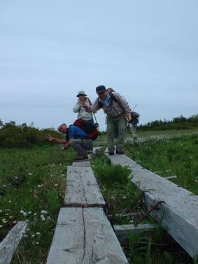 ![]() サンカヨウ イワカガミ タテヤマリンドウ ワタスゲ 帝釈山の下りは30分くらいか 空の模様を眺めながら急ぎ足 駐車場に着くなり雨が落ちてくる 車を走らせると同時に雨粒が大きくなり燧の湯に着くころは土砂降りでした 新しくできた登山口のお陰で短時間にオサバグサの群生に会うことができ楽しい時間を過ごせました 登山口の車の整理や記念品を渡してくれました方々へ感謝いたします ”ありがとうございます” 同行の皆さんお疲れ様でした・・・・たのしかったない・・・SEI 戻る |