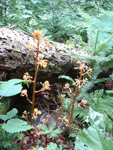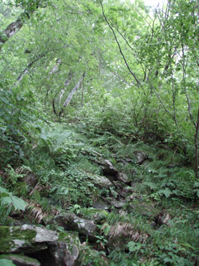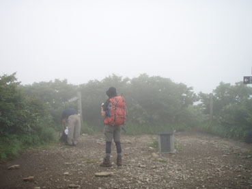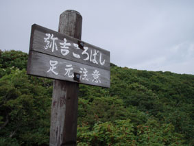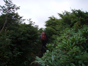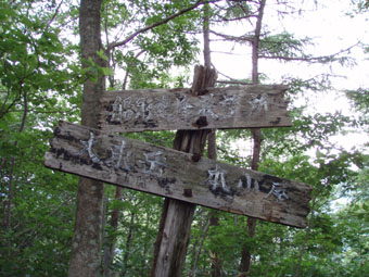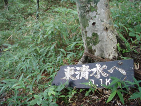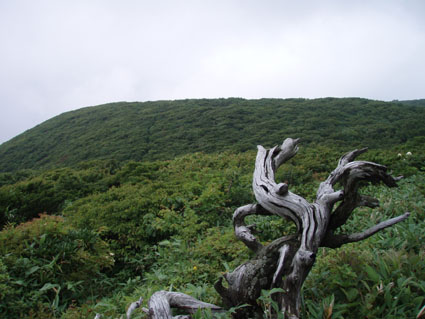 ![]() うだるような暑さのブナ林 いや〜暑いと言うよりは蒸し風呂の中を歩いてる様なものでした ![]() 表コースの登りはじめは杉林が続く 登山道の崩壊場所 登山口に在る駐車場は5〜6台は止めるスペースが在る 準備を終えて登山口を探るが看板も無く地図を見て藪道を進む 雨に濡れた藪は衣類を容赦なく濡らす 数十メートル進むと何と駐車した我が車の裏手に出た・・・車の裏手を進めば濡れずに済んだと嘆くのでした。 ![]() 小行沢を渡る 鹿打林道の道標 杉林を登り切るとブナ林に取り付く 急坂の登山道はつづら折りの道になり高度を上げる 展望は無く何枚写真を撮ってもブナ林と道標のみ 花もあまり咲いてない為に絵にならない(写真のアングルが下手なSEI) ![]() 五合目の道標 歴史を感じる案内 五合目に出るとようやく尾根歩きだ! 尾根は風通しが良く気持ちの良い風が通り抜ける 此処まで登って来て会った人は二人 標高差1000mと長距離登山道の山・・余り愛されていないのかな〜 ![]() 鹿打林道の分岐 黒の集団に追い回されたSEI 鹿打林道の分岐まで来た 黒い集団に痛めつけられたSEIは網を被り防御する しかし隙間から入り込み腕や耳をがぶりと食いちぎる・・・(>_<) 食われた場所は瞬時(大げさか)に腫れ上がり熱を持つ 腕は大きく腫れ上がり真っ赤だ 暑さのために息苦しくなり深呼吸をすると 喉ちんこまで入り込み黒い敵が追い駆けて来ました。 ![]() 標高を表す親切な道標 最後の清水 あと300m強の標高まで登る 此処までで持ってきた水は半分を飲み干した 常には余り水を口にしないSEI 今日は吹き出る汗に負けて水分が足りない体に成ったのか喉がからからだ 東清水まで100mの案内が出てるが下る気にならない このまま山頂に行くことにした ここの稜線はヤシオの木が目立つ 7月初め頃に登ればヤシオの道を楽しめるのだろうと思いながら 稜線歩きの道で在ることを思い出し遠望に目をやる・・が・・・ガスで展望が無い ![]() 鼻こすり ようやく山頂に到着 鼻こすりを登り切るといよいよ山頂に出る 鼻こすりには「がんばってね」の言葉が記されてた 急坂を登り切ると緩斜面になる あと200mの案内に一呼吸を入れた しかし最後の200mがなんとも遠く感じるではないか200mってこんなに在るのかなと疑心暗鬼???に! 背丈ほどある木々の間を出ると山頂の空間に出た 360度見渡す限り白一色の大展望 山頂に在る羅針盤を見ながら 山々を連想するのでした ![]() 山 頂 (Gonちゃん〜SEI) 山頂の祠 山頂は風が通り気持ちが良い しかし展望のない場所に長居は無用とビールを取り出し乾杯し おにぎりをほおばり短時間で山頂とお別れをした ![]() 山頂直下は木々が入り込む 弥吉ころばし付近から山県方面の山を望む(手前が糸岳。遠景が仙台神室と山形神室) いよいよ長丁場の下りだ 山頂直下は木の土留で階段が作られてる登山道である テンポ良く下ると草原が現れ展望が開けた ガスが薄くなり葉山〜月山〜蔵王方面と輪郭はハッキリしないが確認できた ![]() 不思議な形の尖り岩を発見(中央の左下に) 草原の大地から大東岳を振り返る 「尖り岩:奥山寺の甲岩といわれています」・・・SONEさんより情報をいただきました ![]() 弥吉ころばし 見ためより角度があります 初めて見た花 初めて見た花:ツチアケビの花です。(結構珍品です。)・・・SONEさんより情報を頂きました 弥吉ころばしにさしかかり下山路を見下ろすと流石の急坂である 登山道の岩に足をかけるとツルツルの岩は靴底をもろともせづ 滑らし足場を貸さない意地悪ダ! しかたなく一歩一歩足場を確認して下ることにした 踏ん張る足に浮き石が転げ尻餅を着くSEI ザックがクッションになりセーフ ふ〜〜あぶないあぶない 其処に年配の登山者が二人登って来ました 時間は既に十二時を回ってる私達が此処までに要した時間は下りで一時間 此処から山頂まで二時間はかかるかな? 二人の全身から汗が滴り落ちる様を見て安全に行ってきてねと呟きました ![]() 樋の沢避難小屋 小屋脇の道標 急坂の下りも終結し樋の沢避難小屋に着く 小屋には蜂の巣に注意の張り紙がある おそるおそる小屋に入り眺めるが蜂の巣らしき物体が見あたらない小屋の中には布団が干してあり 渓流にでも行ったのかウエーダーも吊されて居ました ![]() アジサイの斜面 裏 磐 司 の案内 小屋から沢沿いに下るとアジサイが斜面に群生してました 斜面に咲くアジサイは宝石の様な輝きを放してた 裏磐司の大岩の圧巻を眺め大東岳の魅力に新しいページを刻む ![]() ソバナ 渓流釣りを楽しむSEI 花は多くは咲いてないが渓流に沿って咲く数種類に足止めをされた 初めて見る花 ? もあり写真に収めるがピンボケで使い物にならない写真が多かった・・・反省 京渕沢で渓流釣りを楽しむ 魚影が濃く午後の二時で日差しがあるにも係わらず毛針を目がけてライズする 大物も水面を揺らす・・・次回は渓流釣りに来るぞ〜と時めく心に たるむ笑顔?でした。 ![]() ホツツジ 、アキノキリンソウ 、イワインチン(蕾) 、カラマツ