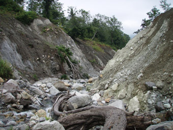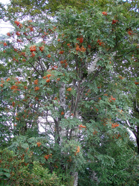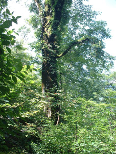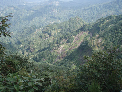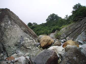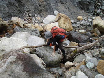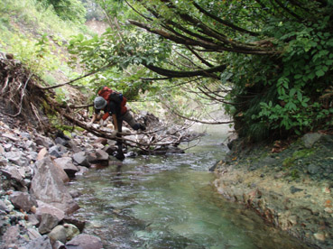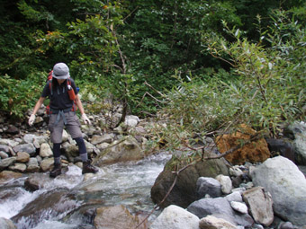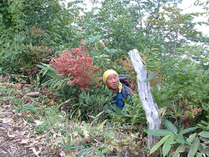 ![]() 登山口の様子 ブナの古木 登山道(藪道) 今日も懲りずにトンビマイタケを採る為にブナ林を訪れる ブナの古木が多いところと言う事で浅草岳の山腹を捜査することにした 入叶津の登山口は駐車場も広く仮設トイレも設置してあり安心して登山を楽しめる所だ しかし登山道は藪道や滑る岩場も多く注意をしたい。 ![]() 沼の平分岐 小三本沢を渡る 沼の平の分岐まで斜面の古木を手当たり次第に捜査するがトンビの姿は無かった 登山道の近辺には人が入りやすくキノコが在っても直ぐに確保されてしまい見つけることが出来ないのではと 登山道として通行禁止になってる沼の平方面に足を伸ばす 登山道を下りきると小三本沢に出る 其処から先は崖の崩落が激しく 崩れやすい形状になっていた ![]() 沢のガレ場 落石が散乱 崩れやすい崖 崖をよじ登るのを諦め沢筋を遡行した 沢は岩やゴロ石が点々として危険を感じる 1m以上在る大きな丸い岩に手をかけるとフワーッと岩が動き沢にドスーンと転げ落ちた ウワーと驚く声が沢に響き緊張感が高まる 其処から先は慎重に岩を確認して浮き石や崖の状態を気にかけ進む 左右崩れ落ちた崖は不気味に見えた ![]() 沢を遡行 滝が現れた 沢を登ってゆくと左右が崖で遡行するのが困難になり目的の位置までは未だ先だが仕方なく山腹を登ることにした 途中の崖からは湧き水なのか綺麗な水が勢いよく流れ出てた ![]() ブナ林を捜査(トンビマイタケ)するSEI 蒸し暑いブナ林を登る 古木を見つけると木々に掴まり近づきトンビの捜索 古木にブナヒラタケを見つけピース 標高差300mの藪&急斜面の登りは体力が激減する 古木の周りを捜査して崖から這い上がるSEI 藪を登り切り稜線に出たSEI 思わず馬鹿面で喜ぶ姿を披露する 藪で視界なしの山腹をコンパスで方位を確認しながら進むのは気苦労も重なり重労働だ ![]() トンビマイタケは見つからないが美味しいブナヒラタケをゲットした ブナヒラタケをゲットして喜ぶが肝心なトンビマイタケの姿は無かった 昼飯の場所 ナナカマドの実が色着く 稜線に出て昼食にした すだれの上で休憩はビールが一番似合う 疲れた体もビールと共に快復するのが解る 赤のカンビールを6本担ぎ上げたが全て飲み干した 其処に単独の登山者が下って来た 山あるきをこよなく愛し常に単独で山旅を楽しんでると話す 今日も電車で来て(東京の方)電車で帰ると話す姿が爽やかに感じた ![]() 蒲生岳方面 南会津方面の山々 途中の空間から霞む展望を楽しむことが出来た 会津のマッターホルン蒲生岳を始め 平ヶ岳や南会津の山々が薄い縁取りを魅せてた ![]() 集落が眼下に見える 荒々しい山肌を確認 下山は登山道から余り外れることなくトンビの捜索を繰り返す 素晴らしい古木がいっぱいあるが、どれも見かけ倒しで トンビどころか雑キノコの姿も無かった・・・(苦笑) ![]() 沼の平分岐の祠と通行禁止の登山道 平石山から沼の平の分岐までは滑る箇所が多く浮き石にも注意が必要だ 朝の6時に登山口を出発してから8時間は経つ 目線は常にブナの古木でブナ林の魅力を味わうのを忘れてたのに気づき あらためて登山道を飾るブナの並木に見とれた 午後の日差しがこぼれる林に今日の疲れが癒されました。 ![]() ブナ林 アケビの実と不思議な形の実がなってた ブナ林ともお別れして登山口に近づくとアケビの実が連なりその脇に不思議な形の実(写真で解るかな)がなってる 見たこともない形にGonちゃんが不思議な笑みをこぼすのでした。 ![]() 登山道の花 道中のお花さんは少なく目に付いた物を記録に残す(本当はブレで写真にならないのが多い) 登山口に付いたのはPM3:40分 登り始めてから9時間40分の大捜査でした Gonちゃんお疲れ様でした(今日も騙されたとぼやく姿あり) 今年のトンビマイタケ捜査はこれで終わり・・・・来年に続く・・・Gonちゃん来年も宜しく ・・・・SEI・・・・ 戻る |