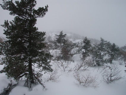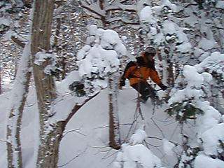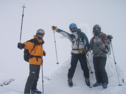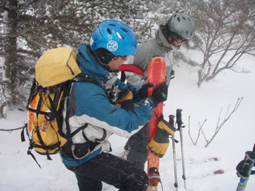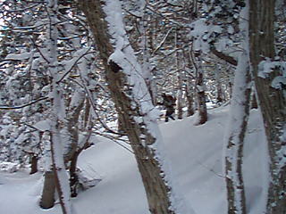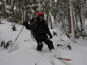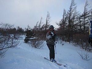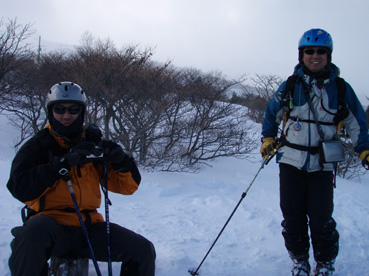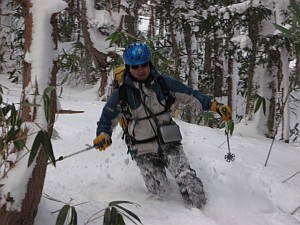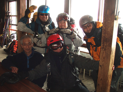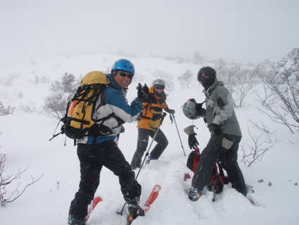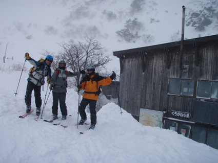 ![]() 勢至平の風景(山頂はガスの中で一日中太陽が顔を出すことは無かった) 昨日は強風でゴンドラが動かなかった奥岳スキー場へ到着した 準備をしてゴンドラ乗り場へ移動する しかしゴンドラはワイヤーから外されたままである、運行はするのか・・? Raccoさんが係員に聞くと始発の時間は遅れるが運行はされるとの情報だ! ゲレンデハウスで待つこと30分 ゴンドラ乗り場の扉は開いた。 ![]() 薬師岳を出発(HAMAさん) シールトラブルのRaccoさん 薬師岳の山頂駅に着き ノントレースのルートを進む ラッセルはHAMAさん〜Raccoさん〜Soigaさんと交代でSEIは遅れて後方をついて行くのが限度である 藪を進んでるとRaccoさんのシールが外れる そこで登場したのは近代文明の落とし子・・! シールは簡単に補助テープで固定され事なきをいた。 ![]() 山頂へ進む(Raccoさん・HAMAさん・Soigaさん) 稜線の藪状態 藪を進んでると今度はSEIのビンディングトラブルが発生する ゆるんだビンディングの調整ねじが動かない歩くと直ぐに外れてしまうのである 応急処置としてRaccoさんが動く方のアジャスターを締め付けてくれたバランスは悪いが外れなくなる。 ![]() 分岐を越えて山頂へ 山頂の道標はエビのシッポ 山頂が近くなると安達太良山の名物がお出ましだ 強風が体当たりで襲ってきた 体感温度を一気に下げる山頂直下はこの地の代名詞である。 ![]() 山頂で(HAMAさん・Raccoさん・Soigaさん) HAMAさんのHPより SEI スキーをデポして山頂へ 全て凍り付いた山頂の置物は氷の彫刻のようだ 見渡す限り白・・白・・白の展望は長く居る場所ではなく写真を撮り早々と下りる 風よけの岩の陰で小休憩をして滑降開始 ![]() 峰の分岐 ルートを確認するHAMAさん & Raccoさん 山頂直下の壁は手探りの滑降で ホワイトアウトの急斜面は手強い相手だ HAMAさんが先頭に下り 後方をSEIがついてゆく足下しか確認できない雪面は時には崩れ流れた ガスの中を離れないようにRaccoさんSoigaさんと下る 峰の分岐まで来ると やや視界が聞くようになり方位を確認 谷筋のパウを食べ滑降を楽しんだ。 ![]() 強風でもホワイトアウトでも何時も楽しむSoigaさん くろがね小屋で (*^_^*) 管理人の佐藤さん・Raccoさん・SEI・Soigaさん・HAMAさん 谷筋からトラバース気味にくろがね小屋へ到着 小屋のダルマストーブの温もりの中で昼食に有り付く SEIはもちろん定番のカンを開ける、プシューと小気味良い音が小屋に広がり安堵の時を過ごした 居心地の良い小屋で ついつい長居になるがお泊まりのお客さんが来る前にと小屋を後にした ![]() 小屋を出発 勢至平の分岐で充電中のHAMAさん・Raccoさん お腹も癒された気持ちも満腹に成り一滑り 小屋から勢至平までの緩斜面の上り下りは汗を絞られる シールを貼らないで移動するのは甘かったか 満たされた電池を直ぐに使い果たしてしまい休憩をする事数回でした・・・(笑) ![]() 飛ばすRaccoさん 動画を撮りながら滑るSoigaさん 林道の分岐へ着いた ここから林へ突入 適度な斜面の雪は上質で滑降を楽しめる HAMAさん〜Raccoさん〜Soigaさんと踊るように滑る姿を見てSEIも気持ちは同じ・・滑降開始・・ダ(>_<) しかし気持ちと体はバラバラで大回転あらず大転倒のオンパレードでした。 ![]() 林を滑るsoigaさん HAMAさん ![]() へっぴり腰のSEI Raccoさん 皆さん有り難うございました楽しいツアーをまたよろしくお願いいたします ・・・SEI・・・ (@_@) HAMAさんのホームページへリンク (@_@) Raccoさんのホームページへリンク 戻る |