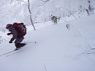 適度な斜度にパウと来れば下手なテレも滑りは最高 絶好調・・・飛ばせば待ってるのは大回転