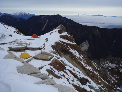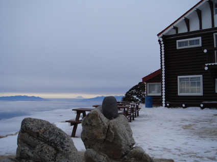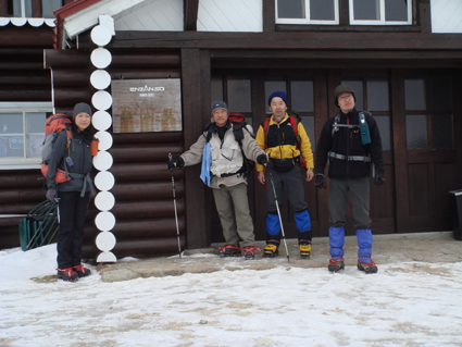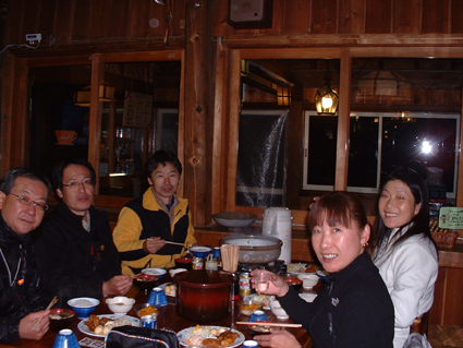 後編ー1 戻る ![]() 槍の尖りに負けじとオブジェ 北鎌尾根 下山時には北鎌尾根が黒い岩肌で迫る 人を寄せ付けない尾根の魅力は神秘的に映りました ![]() 小屋にて 鍋を囲み! (一匹さん・SEI・Takaさん) (Tさん・一匹さん・Takaさん・Yumiさん・Gonちゃん) (Gonちゃん・Yumiさん・Tさん) (*^_^*) 小屋に戻り宴会に突入した 冷えた体にはホットワインが最高と早々に頂くSEI 同席したTさんYumiさんと共に私達は山談義で宴も盛り上がりをみせました。 TさんYumiさん楽しいお話有り難うございました また会いましょうね (*^_^*) ![]() 鍋が美味しい 小屋では冬季限定の鍋料理 煮込まれたコクのある味に大満足の夕食が並ぶ! ![]() オーナーの演奏するアルプホルン 毎回楽しみにしてるのが小屋のご主人が奏でるアルプホルンの演奏です 今回も素晴らしい音色と楽しい山にまつわるお話を頂きました 何時も有り難うございます。 ![]() テント場 日が沈み山並みが眠る 小屋の外に出ると日が沈み テント場も動く気配もない静けさだ ![]() 朝日が差し込む風景 眠りから覚めると薄明かりが窓から射し込む 急いで外に出ると山並みの向こうには朝日の溢れる風景が広がるが 雲が厚く太陽の姿はなかった。 ![]() 八ヶ岳〜富士山〜南アルプス 燕山荘 食事を済ませて4度目の山を後にする時間が来ました 小屋の外にはアルプスの山々が雲海に広がる 360度の展望は雲に挟まれた山脈のパノラマ写真を見てる様です ![]() 下山前に! Gonちゃん〜SEI〜Takaさん〜一匹さん 惜しむように大地を噛みしめ確認する私達 燕山荘の皆さん美味しい料理ご馳走様でした 温かい持て成しに感謝いたします。 3年後の記念行事に又来ますね 有り難うございました。 後編ー2へ |