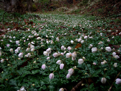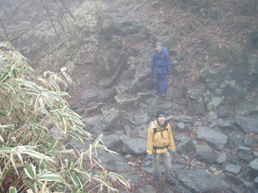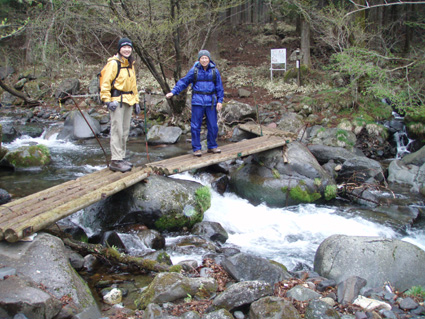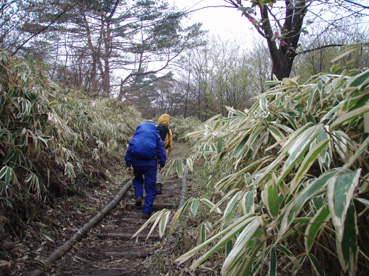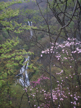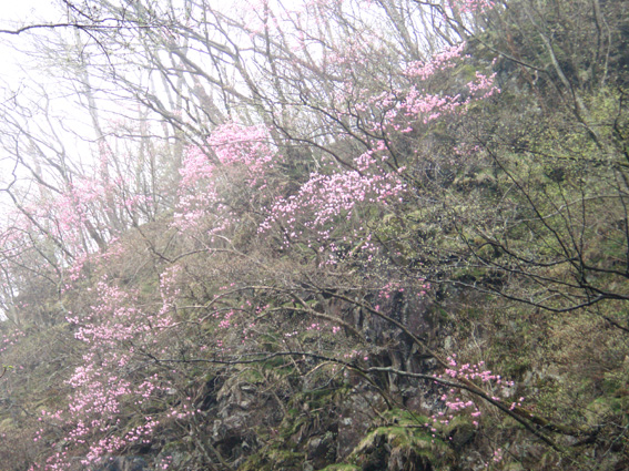 ![]() アカヤシオ 最初から小雨の一日となりました コースガイドは四時間三十分 距離9・5kmとあるが かかった時間は5時間強で(下山後に霧降の滝も含む)距離も10km以上歩く(コースを数回外れる)・・? 明日の至仏山の前に足慣らしと洒落込んだ山だが甘くは無かったです アカヤシオの咲く崖や滝の多いコースは魅力が一杯でした 山全体がツツジの木で覆われてるので之からの季節が賑わいを見せると思います ![]() 霧降の滝に在る駐車場から入る 笹に覆われた山 「霧降の滝」 駐車場にむかい車は走る 朝から雨が降り車窓から見る景色はどんよりと暗い・・ 駐車場でsu−さんと待ち合わせて合流した 大山ハイキングコースの看板の前を通り 笹で覆われた山肌の登山道を進む。 ![]() コースは木の枠で土留めが施されてる 歩きやすい遊歩道がハイキングコースと成ってる 小さな上り下りが霧降川に沿って作られる登山道もお目当ての花は少ない。 ![]() 霧降川に係る簡易の橋を渡る 岩に張り付き咲く、色鮮やかなアカヤシオ 渓流にかけられた簡易の橋を渡ると、杉林に山肌を変えた登山道にさしかかる 杉林は暗く登山道で一番苦手な通過場所だ! ![]() 玉スダレの滝は変化に富み幾筋もの流れが優雅に映える 最初に現れたのはタマスダレの滝で階段状に広がる小さな滝が重なり目を楽しませてくれ・・ 最初の看板から少し上がると立派な展望台が在り、下からの眺めと展望台からの眺める位置で変化を楽しめた。 ![]() マックラの滝は豪快な流れと岩に飾られたアカヤシオがお見事でした 次に現れたのがマックラ滝だ! 高さと豪快な流れに花を添えるようにアカヤシオが崖に張り付き群生した姿が見事で(TOPのヤシオ) しばらく滝の下から離れることが出来なかった。 ![]() 霧降牧場の中を何回も交差する登山道を進むと山頂に着いた 山頂には一組のご夫婦が居て この寒さと天候では誰にも会わないだろうと思ってましたが やはり好きな方が居るのですねと目を細めてました。・・・(笑) 寒さの中で昼食をとり(体も手もかじかむ)下山 牧場の中を通過するが金属で出来た狭い通路は メタボの人は通れないだろうなとメタボのSEIが呟くのでした。 ![]() ツメタ沢の流れは緩やかな表情でした 下山時、最初に現れたのはツメタ沢で特別に変化はない沢だが之がツメタ沢と 冷たい視線を送る・・・(~o~) ![]() 登山道に在る祠 由緒ある歴史に刻まれた貫禄の持ち主です 登山道で唯一奉られてた祠に出会う 小さな小さな祠でしたが案内板を読むと歴史のある祠で、登山者の安全を願い佇む姿に安らぎを頂きました。 ![]() ○ ○ の群生 (お見事の一言です) 今日の登山でお花の群生は此処だけでしたが渓流の脇に広がる薄いピンクの花は満足度100パーセントです ![]() 丁字の滝は帰りに見つける(なかなか姿を見せない・・・?) 登りで看板だけは確認しましたが滝の場所が解らなかった丁字ヶ滝を発見した 流れ落ちた先は滑床に成ってる風情在る滝だ! この滝を登山道の最後に楽しむと間もなく駐車場に着く 登山道は霧降高原道と平行になると終点になり、小雨の降る中の登山も終着駅へ・・・ ![]() 駐車場近くにある霧降の滝は豪快で素晴らしい景観です 駐車場にある「霧降ノ滝」入口の案内に沿って進むとアカヤシオとツツジの咲く展望台に着いた そこから眺める滝は必見の滝と公言できる雄壮です。 この滝だけを見に来る観光客が多いのに納得でした ![]() 道中の花ー1 ![]() ![]() ![]() ![]() ![]() 道中の花ー2 足慣らしのつもりで訪れた大山でしたが 一日中雨で寒く、体には応えた登山になりました しかし道中の花や多くの滝に感動と優しい触れあいを頂く 最後に見た霧降の滝は眺める者の心を引きつける魅力が在りました。 戻る |