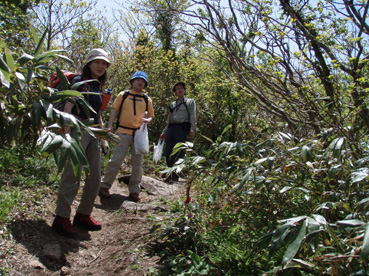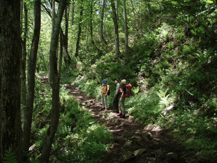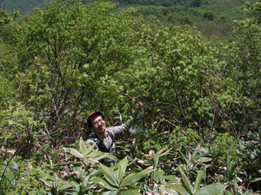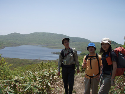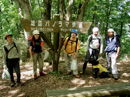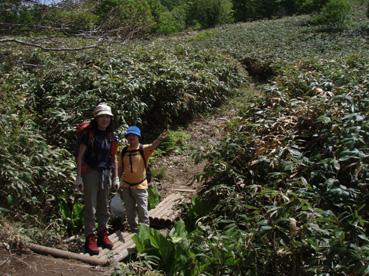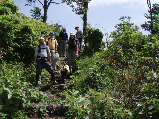 ![]() 深緑が爽やかな登山道 1日は予想に反した良い天気で 檜原湖登山口から雄国山山頂へ山菜の宝庫を辿りながらラビスパ登山口へと下る 途中でジダケやアイコ・シオデ・タラノメなど山の恵みを分けていただいた 前日の深酒が利いたのか足取りが重いSEI・息をハアハアと歩く・・・ 皆さんは元気で山頂のビールタイムも美味しいと笑顔の休憩だ! 青空が広がり展望を仰ぎ見ることが出来たのは何週ぶりだろうか記憶が薄い 久しぶりの好天に誘われてか黒い虫の軍団も登場だ! 山に響き渡る歌声があっちこっちで聞こえる「野鳥の囀である」 野鳥の声が甲高く通るブナ林に時折爽やかな風が吹き頬をなでる ![]() 檜原湖登山口で(一匹さん・gonちゃん・ito君) 新緑のブナ林 昨日の山菜オフで飲み過ぎたのはSEIだけか? 皆さんは元気だ。 登山口で写真を撮りブナ林の登山道を登る 緑が濃く昨日降った雨で木々も生き生きと豊かな表情をしてる ![]() 緑が濃く美味しい空気が一杯 木漏れ日が落ちるブナ林 野鳥の声があっちこっちから聞こえる SEIさん今の囀りは何という鳥 え〜〜と 殆ど当たらないだろうがカケスかな????? 春日八郎さんも歌ったように「山の〜カケスが、泣ている〜」難しい話ですみません (笑) くだらない話も山では愛嬌と許してくれる優しい 仲間でありました。 ![]() 雄国沼の分岐にて なだらかな雄国山 分岐からは山頂まで残り20分 なだらかなピークを眺めて、あと一汗である ![]() コシアブラを見つけた一匹さん 雄国沼 分岐から先は低木で視界良好の緩斜面だ キョロキョロと道草登山が登りにブレーキを駆けた しばらくぶりの晴天登山に視界が定まらなく、貪欲に眺める風景は 眩しく沼に映し出される ![]() 雄国沼を背景に! 遠望の尖りは磐梯山 何処までも青い空 沼を囲む稜線 古城ヶ峰(1287.8m)が風景の流れを際だたせてる 何から何まで晴天が醸し出す技のように思えてならない。。 赤い花も。。 ![]() 山頂です(一匹さん・ito君・Gonちゃん) 下山はラビスパへ 山頂は風が吹き気持ちが良い お待ちかねのビールタイムである 皆さんで乾杯〜〜と抜く缶の音 「プ・シュー」 いただきますと勢いよく喉に送り込んだ う〜〜にがー と聞き慣れない発信はSEI 昨日の深酒が残りビールも飲めませんでした。 ![]() 芸実的なツタの模様 ジダケの宝庫です 自然のアートが芸術の森へと移る 木々に宿を借りるツタ コルの平地はジダケの繁華街です 熊さんが歩った獣道なのかジダケ採りの名人が付けた跡なのか 無数の踏み跡が在りました。 ![]() Sakuraがお待ちかね! ジダケ採りのメンバーと合流 下山の途中にsakuraが待ってくれた、ジダケ採りのタッシーとsoneさんの姿が見えない 竹藪の中を彷徨ってるのか お〜〜い お〜〜〜い と数回呼んだ そこにゴソゴソと出てきたのはsoneさん 収穫は余り良くないようだ しばらくするとタッシーも袋片手に現れる ![]() 分岐にて(一匹さん・Gonちゃん・ito君・タッシーさん・soneさん) ラビスパ西口&東口の分岐に着く 此処から東口へ下り アイコやシオデを袋の仲間に入れて散歩だ 賞味期限が過ぎたであろうタラノメも少し頂き汗して最後の歩きになりました。 ![]() ![]() ![]() ![]() ![]() ![]() ![]() ![]() ![]() セミも居ます 戻る |
