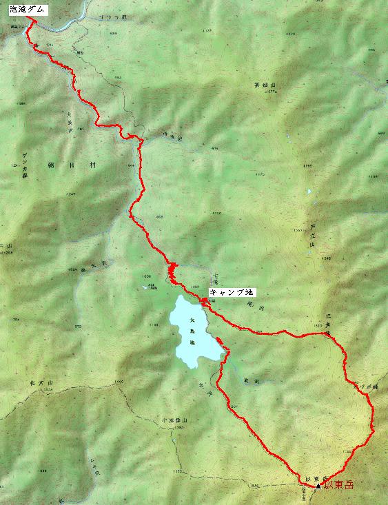 今回のコース 19日へ戻る 20日へ戻る 21日へ戻る 19日 AM8:00 泡滝ダム出発 〜 20分に一度の休憩 〜 大鳥池キャンプ場到着 PM12:20 休憩後(渓流釣りへ行程時間4時間でした) 20日 AM7:40 キャンプ場出発 〜 三角峰AM9:45 〜 オツボ峰 AM10:35 〜 山頂AM11:20 〜 以東小屋 AM11:35 〜 休憩(一時間二十五分) 〜 下山 PM1:00 〜 キャンプ場 PM3:15 渓流釣りへ(4時間の行程) 21日 AM4:30起床 〜 渓流釣りへ(4時間の行程) 〜 キャンプ場へ戻るAM8:30 〜 朝食 〜 コーヒータイム 〜 撤収 〜 下山 AM10:00 〜 泡滝ダム PM12:30 |