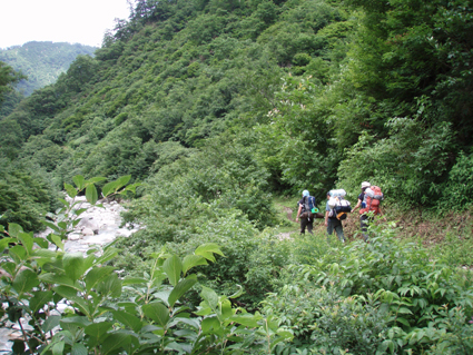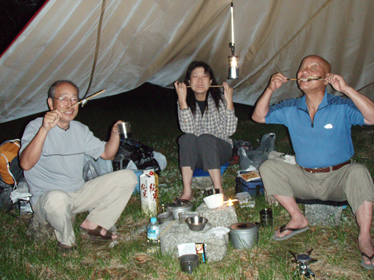 ![]() タキタロウ小屋(su−さん・一匹さん・gonちゃん・SEI) 21日 AM4:30起床 今回のテーマの一つである最後の渓流釣りへと出かける。 沢に入るが当たりが無い、登り詰める渓流に異変が起きたのか・・? 小物が悪戯をするくらいで大物は形を潜める 残念な結果になりました。 キャンプ場に帰り、美味しい自然の展望をご馳走に朝飯だ! なごりを惜しむように噛みしめる時間が二泊3日の記憶を私達に贈る。 テントを片付ける仕草の一つも思い出の大事なページとなりました ![]() 異変が起きた・・? 渓流の出会い 穏やかな湖面を眺めて一言 早起きは三文の得と教えられたような。。。 しかし気合いで早起きして渓流に出かけるも得は無かった (苦笑) ![]() 七曲りを下山 荷物も軽くなった為か足取りは速い ![]() 冷水沢にて休憩です 早く下り汗を流したい 気持ちは温泉マーク ![]() 急降下も終わり緩斜面の登山道を泡滝へ 東大鳥川沿いに平行する登山道 ![]() 登山道にある最初の滝(無名・・?) しぶきのシャワーで涼をとる 泡滝の駐車場に着くと メンバーは登山靴から足を解放した 次の行動は・・・車の中に置いたクーラーから冷たいビールを取り出し (前回の学習能力でクーラーの氷は3日目でも溶けない事が判明) 全員でお疲れ〜〜〜〜〜と のどちんこがシモヤケになりそうな冷たいビールを飲み干した 帰路では 部落にある朝日屋さんに回りタキタロウのタオルを購入 カタクリ温泉で汗を流し 六十里越そば街道に在る「大梵字」にて 手打ちそばを食べた 一匹さん suーさん Gonちゃん 楽しい3日間でした ありがとう 此処からおまけの写真です ↓ ![]() 以東岳の花畑にて ![]() 下山時の一コマ ![]() イワナにかぶりつくメンバー 二泊3日と12時間の山旅が終了した 楽しい仲間と過ごした朝日山地の物語が終わり ・・・・・また新しいページへ・・・・ 3日間で渓流釣りに要した時間が約12時間 釣れたイワナは11匹(時間中りの釣果は0.917匹だ) 初日の荷揚げは全員 今までにない重量を背負い大鳥池キャンプ場へ お陰様で液体燃料(アルコール)は十二分に確保できました。 二日目は花の極楽平らへ探索です 花に癒され 花に魅了され 花の虜になる神秘の世界! 時と共に変わる自然の摂理が、惑わされることなく永遠に続くことを願う ☆☆☆ 仲間にありがとう ☆☆☆ ・・・・SEI・・・・ 戻る |