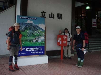 立山駐車場は満車で臨時の駐車場に止めた。空模様は良くないが未だ雨は降りてこない さ〜て出発すんべ!