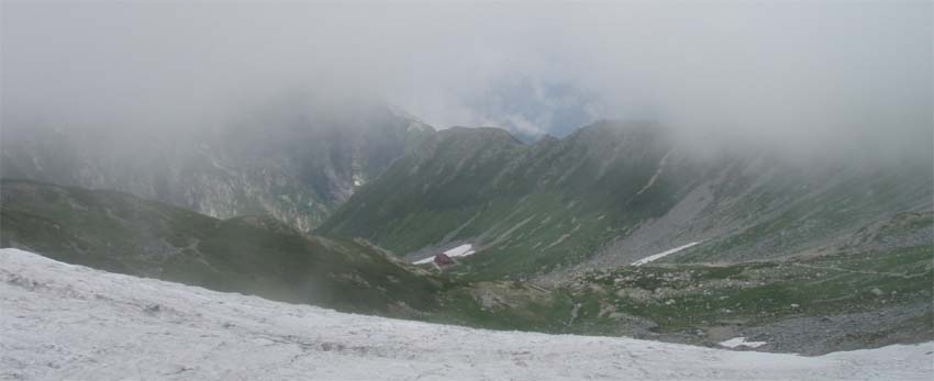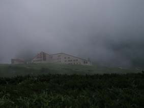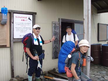 汗を絞り取られた体は疲れを訴え表情が曇る 私たちは乗越に在る小屋の脇で休憩を取る事にした