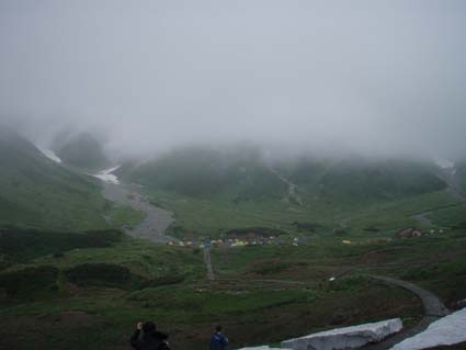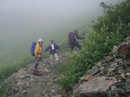 私たちも登山道の花やガスから覗く風景を楽しむ事にした。