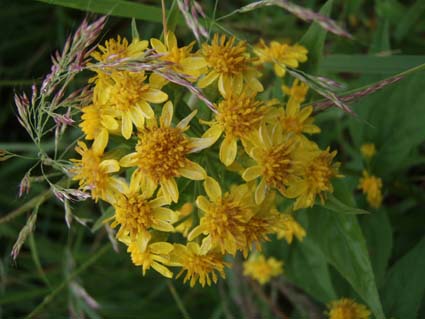 雷鳥坂には目を引く黄色い花が 何だろうこの花は作り物のような形で可愛い花です。