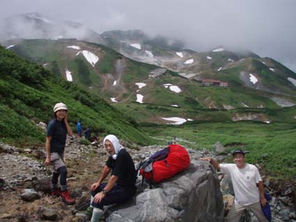 地獄谷を過ぎて雷鳥平まで来ると観光客の姿はなくなり、重いザックを背負った登山者の行き交う姿が目立つ