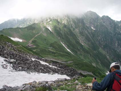 別山乗越まで来るとやや風が強くなるなか剣沢の風景を眼下に確認することが出来た