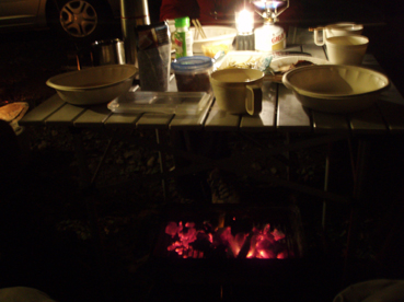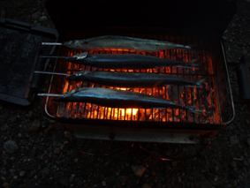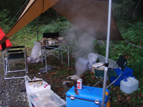 ![]() 仙人沢でキャンプ 笹谷峠から仙人沢まで下りキャンプの準備です 一匹さんは特性鶏肉料理 Nabeちゃんは焼肉と焼き魚 SEIはおでんと讃岐うどん Gonちゃんはもちろんアルコール これで役者は揃ったと宴会に突入しました。 ![]() 暖をとるNabeちゃんとGonちゃん :::: 炭火焼きが美味しい肉だよ :::: ![]() イワナではありません テーブルの下に炭火 焼き魚が出来上がり テーブルの下には炭火で暖を採りました 夜も更けて 讃岐うどんも茹で上がりごちです。 ![]() 朝食の準備 そして夜明けは雑炊です ん〜赤い缶があるぞ朝から飲んだのは誰だ! ![]() 渓流釣りに出かける 釣りに出かけたのはNabeちゃんです釣果は残念な結果に成りました・・・撃沈 ![]() 会津の深山は蕎麦畑が多い ![]() マスタケを発見 キノコ採りを終えて(一匹さん) スギエダタケ・キクラゲ・ヒラタケ・マスタケなど結構な収穫です 一匹さん御世話になりました 戻る |