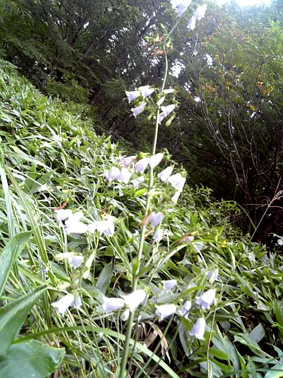 笹に難儀して登ってると紫のソバナが一輪あらわれる