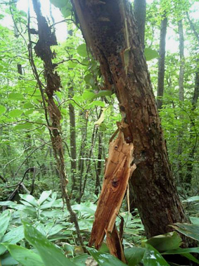 空洞の木の中には蜂の巣らしき物が取られた跡が