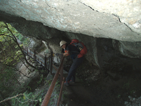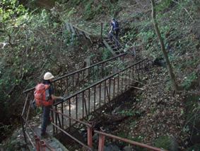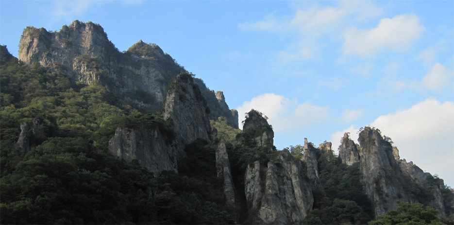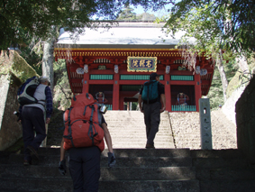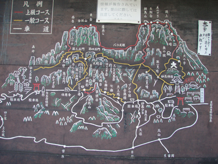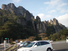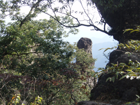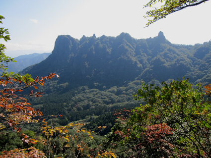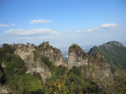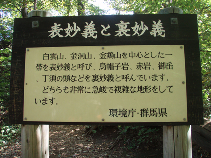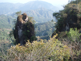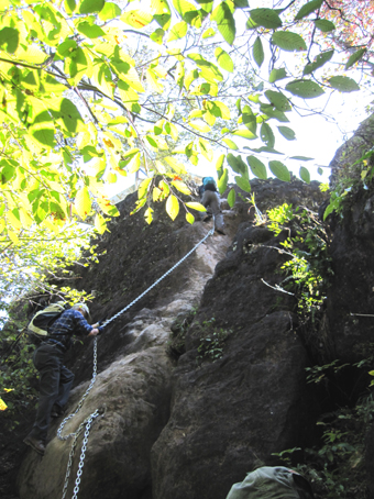 ![]() 中之嶽神社より金洞山 白雲山、金洞山、金鶏山の三つの山からなる妙義山は、 四国小豆島の寒霞渓、九州大分の耶馬溪と並んで日本三大奇勝の一つと云われてる。 ![]() 妙技神社(Ariさん・Sadaさん・Su−さん・Gonちゃん) 昨夜の宴会の余韻・・?もあるが晴天に誘われて妙義神社より元気に出発いたします コースは大の字まで登り巻くように中間道へ下り中之嶽神社まで行くコースだ ![]() 登山コース 神社裏手の登山口(Ariさん・Su−さん・Sadaさん・Gonちゃん) 神社の裏手に回ると大の字コースの入り口です 上級者コースの文字に神妙な顔のメンバー 此から行く登山道には多くの鎖場が待ちかまえてる! ![]() 道標 キケンの文字が多い 大の字の展望台まで登り此から中間道へ下ります ![]() 鎖場 鎖場は垂直在り横歩き在りと慎重に進みます ![]() 見晴台から大の字を望む! 回り込んで見晴台から見る大の字 文字が在る岩は展望台になってます ![]() 大黒の滝 鉄橋 大黒の滝は数メートルの落差しかないが林間に展望を邪魔されてるコースには 貴重な景観であります ![]() 食事の場所です 案内板 第二見晴台からは金鶏山や筆頭岩・金洞山・相馬岳・天狗岳が一望できると在る 風景をおかずに展望台で食事を楽しみ中之嶽へと進む! ![]() 分岐にて(Su−さん〜Gonちゃん) 道標 斜度の在る山腹に作られた登山道は足下が切れ落ちてるところが多く注意が必要です ![]() 良く出来てる石像ですね! こんな場所が多く在ります 本読みの僧は見れば見るほど良くできてます 此も自然石なんでしょうね ![]() 東屋に到着 此処の鉄階段は長く足下がナイフエッジの所在り 東屋まで来ると分岐になり右に登る道を進むと鉄階段が現れ・・・ 岩稜地帯を登るので足下が空間になってる所が多く緊張するが手すりに守られて 安全に通過することが出来た ![]() 突き出た岩の下を進む 分岐 変化に富んだコースをドンドン登ってゆきます ![]() 怪石(ローソク岩・・?) 「日暮らしのの景」と言われる風景 開けた場所から見える風景は異国の山を覗いてるようです ![]() 第四右門 展望台にて! 第四右門から見える大砲岩は素晴らしい眺めだ! ![]() 見晴らし台から見る岩群 中国の山を連想させる山容 第二石門に行く分岐の展望台から見る風景は大迫力の岩峰だ! 岩峰群を心ゆくまで眺めて中之嶽神社へ行く道を下ります ![]() 奇岩 中之嶽神社の大黒様 神社境内で参拝を済ませて いよいよ最後の石段を下ると 大きな大黒様が祀られてる神社入り口に着きました ![]() 神社鳥居 駐車場より金洞山 神社には観光客の姿が多く ザックを背負った登山者の姿は殆ど在りません 昨日の裏妙義山から始まり軽井沢での泊まり そして 表妙義山の素晴らしい景観を楽しむことが出来た二日間でした リーダーのSu−さん・Ariさん・Sadaさん・Gonちゃん 楽しく有意義な二日間を有り難うございました 素晴らしい自然の景観を楽しむことが出来ました ・・・SEI・・・ 戻る |
