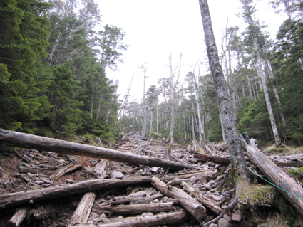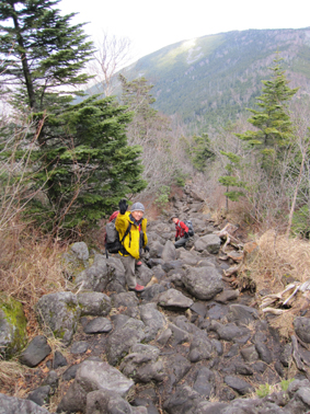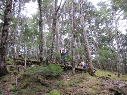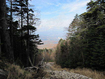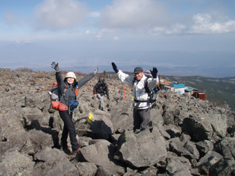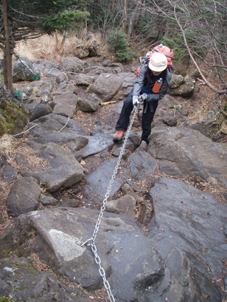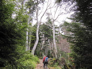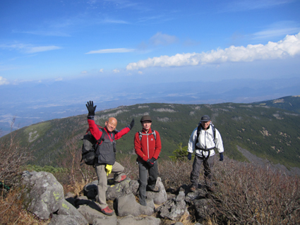 ![]() 登山口で(Gonちゃん・一匹さん・Suーさん) 鳥居をくぐり進む 昨晩の飲み疲れも無く登山口に着いた 駐車スペースは殆ど埋まってたがリーダーSu−さんが確保しておいたと言う・・・? 空きスペースに車を止めてスタートです・・・(笑) ![]() 始めは緩斜面の登山道です 苔の綺麗な山肌が広がる 最初はノンビリムードの歩きでしたが 直ぐに斜度が増す道に変わりアルバイトを強いられるが! 山肌は苔生した緑が広がる気持ちいい登りです ![]() ほぼ真っ直ぐに登る登山道 眼下に見える女神湖 ほぼ直登に近い作りの登山道は振り返り見る眼下の展望が刻々と変わるのが面白い。 ![]() 道標 シラビソ林が広がる ゴロ石が引き詰められた道は辛く 短い距離だが甘くはないのだ・・・苦笑 ![]() 大きな岩が並ぶ登山道 鎖場です 岩に手を取られ 鎖に助けられ 木々の補助を頼りに登る蓼科山 変化もあり楽しく登れる ![]() 鎖場のGonちゃん 山頂直下の(SEI・一匹さん・Su−さん) 天気予報は荒れるとありましたがご覧の様に青空が広がりました ![]() 蓼科荘を眼下に見る 横に並ぶ雲 山頂直下で展望を楽しみ 大きな岩が並ぶ広場(山頂)へと進んだ! ![]() 山頂です(一匹さん・Su−さん・Gonちゃん) 広い山頂の風景 山頂は風が強く帽子を持たないと飛ばされてしまいます 立って居られないくらいの風に登山者は悲鳴(歓喜)を上げて岩にへばりついてる。 ![]() 山頂ヒュッテ(ランプの小屋) 下山のSEI 小屋まで下りると小屋の管理人が小屋じまいの準備(板で入り口を塞ぐなど)をしてた 来年はGWからの営業なので是非来てくださいねと案内されました。 ![]() 蓼科荘の中です(ランプ&手作りの灯り) 分岐にある蓼科荘さんへ寄りました 小屋の中の雰囲気は心休まる作りになってて管理人Shidaさんの手作りです 小屋の中には風景画(管理人の描かれた絵)が飾られ 空き瓶を利用して作られた味のあるランプを 見せていただきました 管理人が穏やかな口調で話される 私は気まぐれなので小屋じまいも決めておらず 気の向くままに過ごしてますと話される姿が印象に残る! ![]() 蓼科荘 木漏れ日の中を下山 小屋で記念のバッチとタオルを求めて後にしました 下山は木漏れ日の中の歩きです ![]() 登山道の様子 間もなく7合目登山口へ 倒木が多い登山道ですが歩くのに邪魔には成りません 上手く並べられてるために大雨などで石や土が流されないように組まれてて管理されてる方々に感謝です 3時間強の行程で素晴らしいピークに立てるコースに満足して下山しました 山頂の広大な空間も他には見られない景色でした 八ヶ岳&蓼科山登山を青空の下で過ごす 下山後30分くらいから大雨になり早めの行動で雨にも遭わず楽しい二日間でした 楽しい楽しい二日間は お天道様とリーダーSu−さんのお陰様と感謝してます 今後とも宜しく御願いいたしますね! 参加の皆さん有り難うございました ・・・SEI・・・ 戻る |