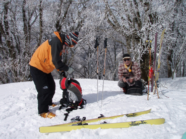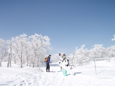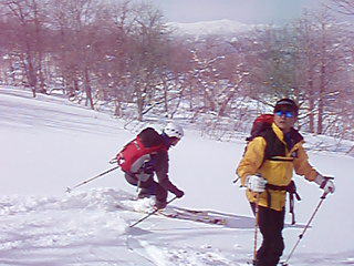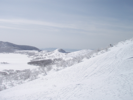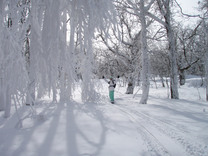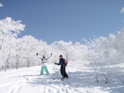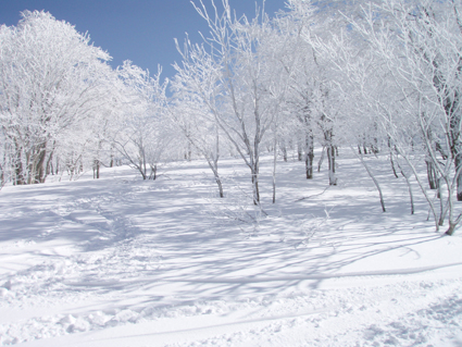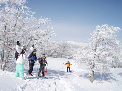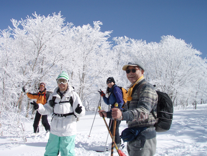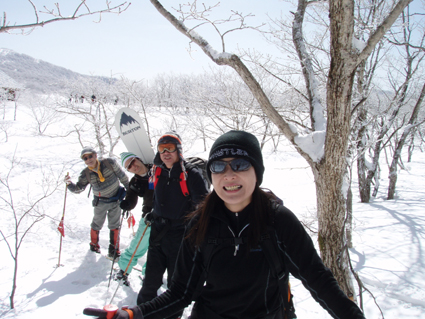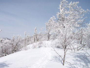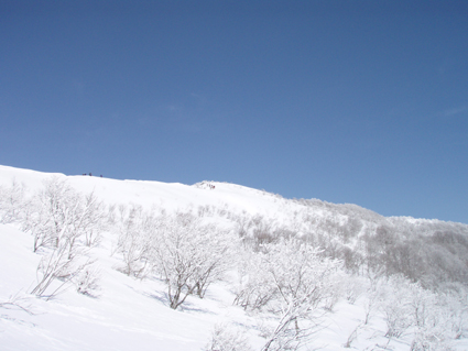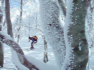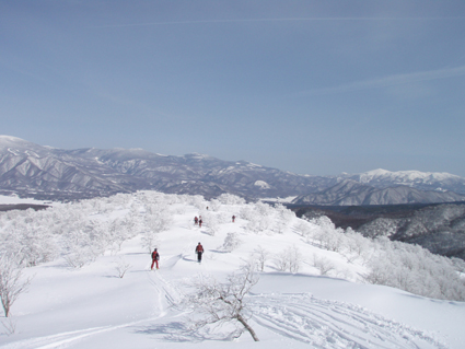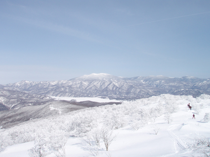 ![]() 雄国山 (稜線を行く小山のHasidaさん & メンバーさん) いや〜〜〜 久しぶりに好天の中でツアーを楽しみました 猫の駐車場は数珠繋ぎ朝から凄い人です 早々に準備をしてリフトTOPへGO− 雄国沼を眼下に眺め気持ちの良い滑りです 少し意地悪な斜面も現れるがお構いなしの滑降です 好天に誘われてか多くのスノーシューや山スキーの 山家さんとお会いしました 青空と樹氷原 走る板の感触に気持ちはハイテンション 奇声を上げて下る ヒョー he−HE− 最高〜〜〜〜 私達メンバー 5人は異常な行動でした・・・爆笑 雄国沼休憩舎に着くと小山のHasidaさん& 7名のメンバーさんと合流することが出来ました 此処からは同じコースの滑降を楽しみながらラビスパへ・・・ ![]() ゲレンデTOPの様子 尾根から眺める風景は白一色だ! 箕輪山の腹には幾筋ものゲレンデコースが浮かぶ 迫力の山は裏磐梯・・眼前に鎮座する姿は素晴らしい ![]() これから雄国沼を眼下に滑り込むメンバー (Kuniちゃん・Gonちゃん・Nabeちゃん・Haruさん) 背景に飯豊山が収まり パウダーの雪原に上機嫌の私達は直ぐには滑り降りることはなく 樹氷原の虜になり金縛り状態に陥りました。 ![]() 樹氷 白銀の世界へ 何処を見ても銀世界 青空とのコントラストは絶妙で眩しい光を放し 足跡のない雪原に板の筋が残る ![]() 青空と樹氷と喜びのメンバー 滑っては止まり 樹氷原に溶け込み感触を確かめる Nabeちゃん Haruさん ![]() Kuniちゃん Gonちゃん 皆さん躍動感溢れる滑りです ![]() 眼下の沼に滑り込む 今日は全ての雪原がツアーエリアです ![]() 樹氷原 雄国休憩舎に到着のKuniちゃん 雄国沼の縁を歩き休憩舎へ到着 ![]() 休憩舎 Haruさん & Nabeちゃん 休憩舎ではNabeちゃんが持参した「どぶろく」をご賞味し イカ飯をおつまみに休憩を楽しみました。 ![]() 小山のHasidaさん(右)とメンバーさんです 小山の8名さんは私達が着いたときには既に休憩舎で寛ぎタイム! 皆さん雪のあるところは何処でもツアーコースにしてしまう最強軍団です 素晴らしい滑りを拝見いたしました。 ![]() 休憩も終わり雄国山へ SEIも一枚記念にカシャー(頭が黒い・・?) 無風晴天の素晴らしいツアー日和も後半へ続きます 固い雪の層に昨日の新雪が重なる絶好の条件が此処からも待っててくれた。 ![]() 気温が低いため樹氷が落ちない 晴天に浮かれるメンバー 枝の樹氷も落ちてたまるかとしがみつき青空に泳ぐ 明日を約束されない光は 今を大切に輝き続けるのでした。 ![]() 稜線 飯豊山を山越に捉える 尾根に出れば360度の開放と白い峰々が眼前に広がり 私達は吸い込まれるように体を投げ出した 穏やかな空間は優しい時を提供してくれる 一旦暴れ出すと凶暴な牙をむき出す自然も 今日ばかりは姿を隠し山人を迎えてくれた。 ![]() 小山のメンバーさんが行く 吾妻山と眼下に檜原湖 山頂で小休憩を終え・・稜線を走り出した山スキーの面々は踊るように滑りを楽しんでるようだ ![]() 磐梯山 稜線の風景 磐梯山に背を押され 尾根の木々に歓迎された一日も間もなく終えようとしてる ![]() 小山のメンバーさん ![]() 小山のメンバーさんー2 ![]() Haruさん Gonちゃん ![]() 飛んでます Kuniちゃん パウダースノーは午後に入っても姿を変えることはなく 小山の皆さんの華麗な滑りと共に私達も谷筋や山腹を滑り 久しぶりの好条件にはじけまくるのでした! ![]() 1102mピークより最後の滑降を前に! コルよりシールを付けて登り返し 1102mのピーク此処から最後の滑降です 適度な斜面のお持て成しに心地よい滑り そして最後の斜面に着くと待ち受けるはすり鉢状の急斜面だ! ここは思いっきり下る 上々の雪質に歓喜を上げて最後の滑りを楽しみました。 Hasidaさん小山の皆さん道中有り難うございました またお会いいたしましょう Nabeちゃん・Haruさん・Kuniちゃん・Gonちゃん いや〜〜〜久しぶりにたのしがったない (*^_^*) ・・・SEI・・・ 戻る |