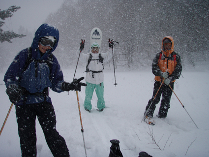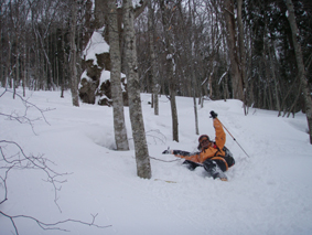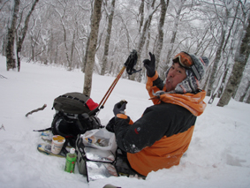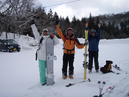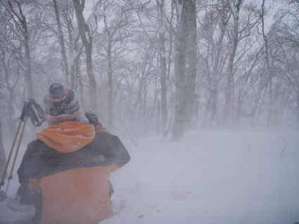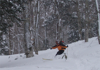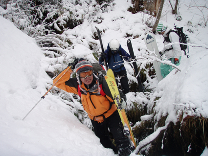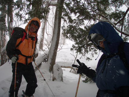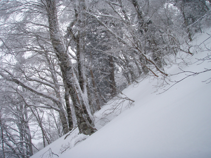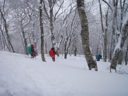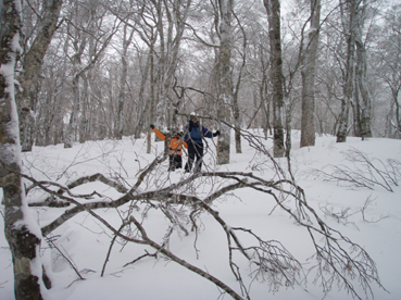 ![]() 吹雪く中の出発です(Gonちゃん・Kuniちゃん・Haruさん) 土曜日は列島が晴れ(全てではない)もようで・・ 素晴らしいスノーツアーを楽しまれたお話を聞きました 日曜日も福島県は曇り〜晴れの予報です パウダースノーを穏やかな気候の中で楽しんで ”くんべない”と メンバー4人で二岐山へ出かけた 予報とは裏腹に夜中から強風が吹き荒れる 走行中の車も横揺れする風だ! 二岐温泉にある登り口に駐車してGO− 此処は比較的風が当たらない場所とのんきなSEIです しかし標高を上げるにしただって強風が雪を舞上げ 木を揺らし行く手を阻む暴れようです と言う事で天気の神様は微笑まなかった。。。 ![]() 林間にはいると風が弱まる 巨木の前で(Kuniちゃん) ラッセルは25cm〜30cmくらいです 登るときに沢が出てるのにはビックリ 今時期に見られない風景だ! 標高1200m位までは比較的風もよけることが出来た林間でした ![]() 枝振りの良い巨木 何時も顔なじみの巨木と休憩を兼ねたチョイ休み。 ![]() ![]() ![]() ![]() Kuniちゃん〜SEI Gonちゃん〜Haruさん 1370m地点で昼飯です 空を仰げば強風が枝を揺らす この状態では山頂まで行っても何も見えないと此処で折り返すことにした 突風が吹き荒れる斜面は食事をしてるカップに雪団子が転がり込む有様だ それでもホットウイスキーは極上の味です カップ麺や7のおにぎりを手早に口にほおり込む面々 これから待ってるパウの斜面を想像してか昼飯の休憩は30分でおしまい。 ![]() Muroiさん達が下ってゆく 食事をした場所の風景 山頂まで行ってきたMuroiさん一行が下り 斜面の揺るんだ場所でお昼の休憩に入りました お先しますと声をかけて私達は滑降に入る。 ![]() 風が暴れると! 滑降前に 風が暴れると一瞬にして画面が白くなる いよいよ滑降開始の時間が来ました 準備も整え美味しそうな斜面を見下ろすHaruさんとGonちゃん。 ![]() ブナの雪化粧 暴れる風の中を滑るGonちゃん(安定) 藪も埋まり良い感じと下るGonちゃんに瞬時に襲いかかる雪煙だ ![]() 一瞬・姿が消えた Haruさん(躍動) カメラの窓からGonちゃんの姿が一瞬消えました 下るほどに風の抵抗も弱くなり林間が面白い しかし油断してると枝や笹の罠が待ってる 積雪の少なさを感じる斜面でした。 ![]() Kuniちゃん(上手テク) こんな事も・・・ 楽しく滑った斜面もお別れです 山頂まで行けなかった山は今日も大荒れ 天気の神様に見放された二週連続 それでも山の醍醐味を充分味わうことが出来た! 取り付きが不安定(土が出てます) ![]() 最後は板を外し沢を渡る 無事に下山 登るときに沢が出てたので 下りは回り込んで駐車場に出ようと試みたがご覧の有様・・・苦笑 此処の山で今時期に沢が出てたのは私は初めてでした ![]() Muroiさん5人の楽しい仲間と共に! 二岐山で宇都宮の皆さんとお会いいたしました SEIと山やMLでお付き合いいただいてるMatuokaさん の知り合いでMuroiさんと5人の楽しい仲間です 挨拶を交わす程度のお話しか出来ませんでしたが またお会い出来る日を楽しみにしてます。 Haruさん・Kuniちゃん・Gonちゃん悪天に負けないで此からも楽しみましょう ・・・SEI・・・ 戻る |