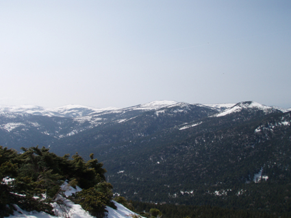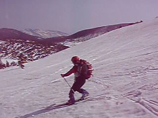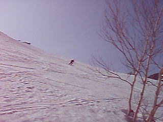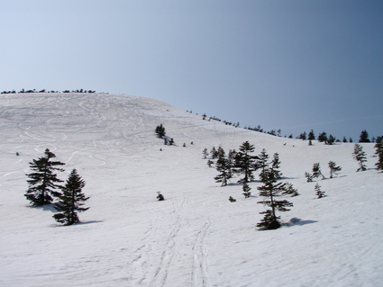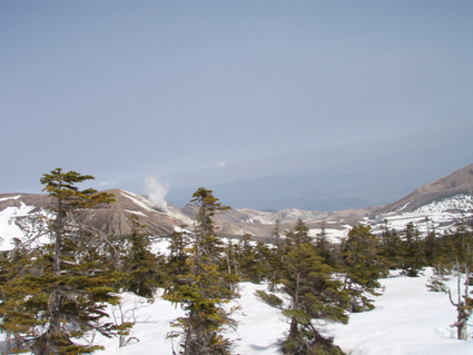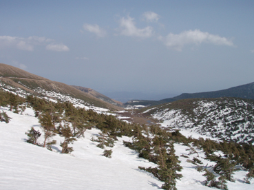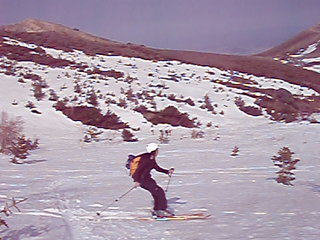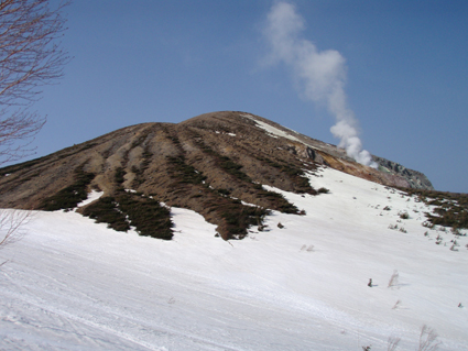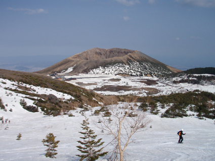 ![]() 一切経山の噴煙(コルは浄土平) いや〜 暑かったですね〜〜 磐梯吾妻スカイライン 雪の回廊も小さくなりました。 日曜日は東吾妻山周回コースで うさぎ平から登り東吾妻山へ鎌沼へ下り前大巓へ登り返す 前大巓のオープンバーンを気持ちよく滑り蓬莱山へ。。。 雪が少なく姥ヶ原では木道歩きとなりましたが ザラメの心地良い滑りが最高でした 天候にも恵まれた有視界コースは疲れません また展望に魅了された山頂休憩は東吾妻山では珍しい出来事です (常に吹雪・ガス・強風などで休憩無しが普通) ただ小さな虫が湧き、息をすると口に入り喉ちんこで暴れ 始末に負えませんでした・・・(笑) 晴天無風で虫も気持ちが良かったのでしょうね! ![]() 雪の回廊 登りの斜面で噴煙を眺める 磐梯吾妻スカイラインの回廊を通り 兎平らの駐車場へ 駐車場は満杯です なんとか空きスペースを見つけて車を止める 駐車場の脇から雪の斜面に取り付き 東吾妻山の山肌を小気味よく登り始めた シールも効き安定した登りです。 ![]() 東吾妻山の山腹(雪は未だ在ります) 汗を絞られるGonちゃん 林の中は完全に無風状態だ! 日差しも強く汗が頬を流れる 白樺の林間から覗く浄土平の駐車場は観光客で一杯なのか車の多さが目立ちます 遅い出だしのためか山家さんと会ったのは登りで一人 下山者の声が聞こえたのが一度でした ![]() 稜線に出て吾妻小富士を振り返る 浄土平方面 稜線に出て展望が開けると眼下のコルや吾妻小富士・高山が視界に入る 山頂を移動する人影も見えた この頃から小さな虫の軍団が付いて歩き耳や鼻の穴に入り遊んでるのか 手に負えない状態です 息をすると吸い込まれ瞼に留まり悪戯をすると 好き放題暴れる虫に無視することも出来なかった。・・・笑 ![]() 山頂から磐梯山 山頂 Gonちゃん 山頂に着くと爽やかな風が頬をなでる 気持ち良い風だ! 山頂広場には虫も居ない 東吾妻山でこれ程までに心地良い空間は希にしか味わう事が出来ないと長い休憩をとる 静かな山頂で会った人は4名でした ![]() 飛行機雲が長〜い 姥ヶ原から前大巓 山頂休憩を終えて雪の付いてる場所を選び滑降開始・・・ 山頂直下こそ林間が狭く滑りに適してなかったが 直ぐに適度な林間が現れ気持ちよく滑れる 眼下の姥ヶ原や前大巓を見ての滑りは有視界の醍醐味を十二分に堪能できた 姥ヶ原の一部は木道歩きになったが残雪を見つけて雪上へ移動して次のピークへと登る。 ![]() 東吾妻山 酸ヶ平方面 前大巓の斜面は緩くウロコの板が本領発揮! トラバース気味にドンドン登る 山頂には3名の先客が居てオープンバーンを滑り返す姿がありました。 ![]() 吾妻連邦 前大巓山頂のsei 山頂では写真を撮り下山 連なるピークに残る雪の白い風景は消えかけてました ![]() 前大巓を滑るsei 此処のオープンバーンは何時も気持ちが良い滑りを約束してくれる 黄砂で汚れてるがブレーキも差ほど気にならない程度です ![]() 前大巓のシュプール 鎌沼方面 振り返りシュプールを眺めて前大巓を後にしました。 ![]() 蓬莱山を滑降するGonちゃん 蓬莱山ではGonちゃんがスピードを上げて滑降してきます メットを振り滑る姿は豪快でした。 ![]() 吾妻小富士 一切経山 酸ヶ平から蓬莱山そして谷筋にコースをとり兎平の駐車場へ 途中で見る吾妻小富士と一切経山の姿が雄々しく 斜面から登る噴煙がゆらゆらと青い空に消えゆくのでした。 素晴らしい周回コースに万歳〜〜〜 戻る |