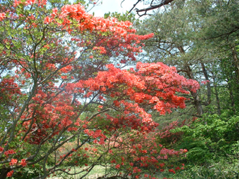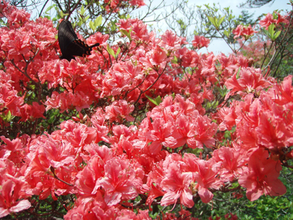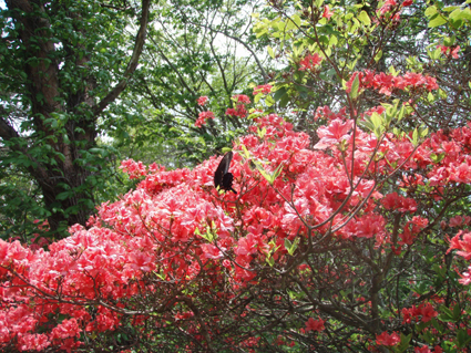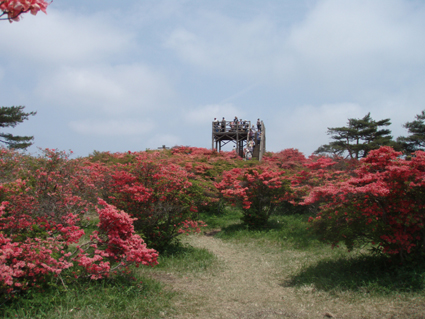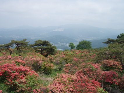 ![]() 林道に咲く藤の花 立派な案内板です ヤマツツジで山全体が赤く染まると聞き急遽出かけた 浮金登山口より登るため林道を進むと平日にも係わらず車が多く 最近の報道を見て訪れたのか県外ナンバーが目に付く! 登山口へ向かうが路肩駐車が多く入れない 仕方なく手前の空き地に車を止め登山口へ歩き始めた 登山口にある二つの駐車場は満車で動きが取れない様子だ 悪路になれない県外ナンバーの車が動くことが出来ず立ち往生してる 登山口を登り始めると麓にはヤマツツジは無く楢の木々が目立つ 木々にはプレートが括り付けられて種類が解りやすい。 登り始めて間もなく物見石が現れた さぞ展望が良いのだろうと石の上にあがり眺めるが 木々に視界を遮られ名前(物見石)のようには行かないのだ・・・(笑) 登山道はジグザグに造られて歩きやすく次に現れたのは太鼓石です 884mの低山の山にしては多すぎるくらいの道標がある 駐車場より35分で山頂と案内されてるが手前に止めた分を見ても間もなく山頂到着と思う 水場の分岐を過ぎると低木帯に出た どうやらツツジの大群落に出たようです 右に東屋を見てツツジで燃えた赤い山肌を過ぎると山頂に到着 山頂の展望台は多くの人で埋まってました ![]() 登山口 道標 登山口駐車場脇に道標が立ってました 素晴らしいですね! 少し行くと木の案内板が在るが少しバランスが悪いような気がする・・・? ![]() 階段のある登山道 中腹は雑木林 プレートが多く種類を表示 登山道はまっすぐ登るコースとジグザグに登る二つがありました どちらも整備された道で登山者が多い様子を感じる ![]() 太鼓石 此処の案内板も立派です ![]() 物見石 山頂直下の分岐 ツツジの斜面 物見石を過ぎて分岐が現れると間もなく山頂です 低木の空間は日差しが入り鮮やかな赤が浮き彫りになる ![]() 東屋(奥に片曽根山・・?) 山頂へ 山頂手前で振り返ると奥に片曽根山・・?が見えた ![]() 山頂のトイレ 展望台 トイレの脇を通り展望台へと向かう 展望台には登山者が多く登ってる 私も上がって360度のパノラマを残すところ無く欲張りなぐらいに堪能した 絶景です ![]() 展望台より(眼下に広がるツツジの楽園) 眼下に広がる風景は 「山が燃える様な!」が似合う絵画のようです ![]() 展望台よりー2 何処までも広がるツツジ群 訪れた時期が少し遅く色あせては来てるが素晴らしい風景に変わりはない ![]() 展望台よりー3 山頂の広い大地がツツジ群を囲み 訪れた人達に憩いの場所を提供してくれてる 思い思いの姿で食べてる人・寝ころんでる人・話しに夢中になってる人など此処は街中かと思わせるような人模様だ! ![]() 時期が遅く少し色あせたツツジ 鮮やかな色を保ち登山者に歓声を上げさせるツツジも数本残ってました ![]() 山頂のツツジ ![]() 山頂神社 山頂神社は真新しい姿です ![]() 蝶がやってきた! 雨が少ない為かツツジも疲れ気味で花の瑞々しさがない そこに花の蜜を求めてクロアゲハチョウが忙しく動く 根元には落下した花びらが散らばり過ぎゆく季節を告げてた。 ![]() 山頂の風景 展望の大地も少し離れると静かな場所へ 此処で昼飯を頂きました ![]() 山頂のツツジ 蝶の動きを観察して写真に収める 何を観察したかと言うと そ・れ・は・秘密! 短い時間の滞在と休憩時間を利用しての高柴山登山は制限時間ギリギリでセーフでした・・・(笑) 戻る |