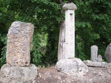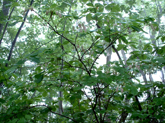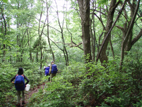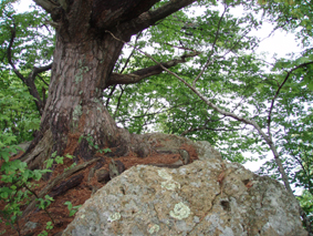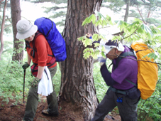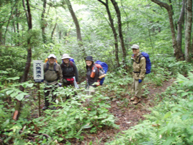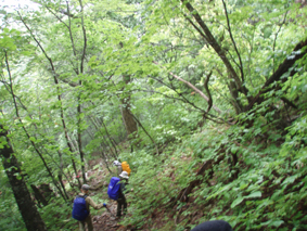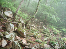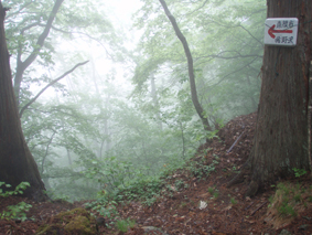 ![]() 下山口(急斜面) ゴロ石の登山道 下山は猪野沢口へと降ります 急な斜面は滑り浮き石が多く気が抜けません ![]() 滑る登山道 雨のブナ林は気持ちが良い! 六角清水 山頂直下に竪穴が在って御室と呼ばれる2m位の神洞であると案内されてたので注意深く見ての下山です しかし滑る道と浮き石に気をとられ見つけることが出来ませんでした・・・撃沈です。 急斜面が終わりブナの神秘的な森を進むと六角清水が現れる 清水まで近寄るが形は五角でした ![]() 神楽岩 天狗岩の分岐 天狗岩に座る松の木・・? 次に現れたのは神楽岩 由来は記されてない・・?が笠を被ったような形に見える 斜面を下りると分岐になり天狗岩方面の案内板だ! 岩に会うために一旦登り返しの道を進んだ 其処には大きな岩にドッシリと古木の松の木が座る。 また展望も良く水晶山の斜面が一望でき 斜面に咲く白い栃の花が見事でした ![]() リーダーは疲れ気味 猪野沢登山口へ下山 地図を見ると天狗岩からも下れそうな気がして リーダーZenちゃんが先行して様子を探る・・・しかし敢えなく行く先を拒まれ 引き返し猪野沢口へと進む 一度下ってから登り返したリーダーZenちゃん疲労困憊の様子です ![]() 道端には山菜が豊富 民家の脇を通る シシウド 登山口からは舗装歩きで道路脇には山菜も豊富だ フキやワラビがニョキニョキと行儀良く並ぶ 民家の脇を進むと果樹園畑だ サクランボの5m位在る棚に登り作業をする姿があり 細いパイプにのり身軽に移動してる 見てる方が恐怖を感じた 立ち止まり挨拶を交わすと気さくな方で 地元の情報なども聞くことが出来!また川原子登り口にある六角堂の事や 水晶山・サクランボの時期など短い時間だが優しい言葉の端はしに温もりを感じる事が出来ました。 ![]() 雨滴岩(林の中に見える) 一周を終える頃に部落の奥に見えたのは雨滴岩だ 舗装路歩きで疲れが出始めた私達は 遠望より岩の鎮座する姿を見て寄り道とまでは行かなかった ![]() 川原子の大鳥居 石仏 車窓から確認できた大鳥居まで来ました 此処から車をデポした位置は直ぐで 少し休憩をとりながら案内板に目を通す ![]() 跡地が多く在りました 一周コースです 山麓一帯には石鳥居や日輪寺跡・大輪寺跡・霊山寺跡などの史跡があると案内されてます わずか667.9mの低山でしたが内容のある充実感の味わえた山旅でした。 ![]() ナルコユリ 栃の花 ![]() 道中の花ー1 ![]() 道中の花ー2 ![]() 道中の花ー3 1300年前に開山された水晶山(すいしょうざん)に来ることが出来て良かったです リーダー Zenちゃん先頭を切って蜘の巣と戦いコース確認や由来の説明など有り難うございました Sadaさん・Yukariちゃん・Gonちゃん楽しい旅でしたね! ・・・・SEI・・・・ 戻る |