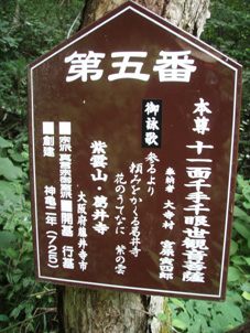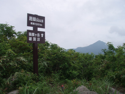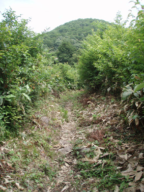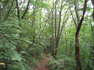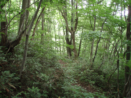 ![]() マヤタケ山(左) & 雄国沼のニッコウキスゲ マヤタケ山は33の地蔵さんが祀られてる信仰の山です 山頂直下には神社があり行基清水が湧いてて 汗を絞られ登ってきた人には有り難いですね! 河東にあるマヤタケ山登山口から登り(AM10:00)山頂にはAM11:50到着 休憩をして猫目石へと足を運んだ そこから雄国沼周回コースを回り 再びマヤタケ山へ登る 下山開始はPM3:30だ! 帰ってからの所用があるため時間に制約され急ぎ足で下る 車をデポした場所に着いたのはPM4:15殆ど小走りに下りたため早い下山です・・・ 休憩時間を利用しての登山だったが無理な時間設定に疲れました 雄国沼のニッコウキスゲは満開で沼を黄色く染めててる 金沢峠にはシャトルバスが二台止まり観光客が展望を楽しんでました ![]() 車のデポ位置 林道の様子 杉が植林された所を通り 林道途中に車を止めて歩きだした 木々に囲まれた林道から杉が植林された風景に変わる ![]() 登山口の道標 登山口 クワゴの実 間もなくして登山口へ到着 登山口には錆びた道標があり何とか文字を読むことが出来る 綺麗に刈り払いされた道が続き道端にはクワゴの実が熟してて お食べと言ってるように見えたので少し頂きました ![]() 木イチゴ 赤い実 登山道の様子 次に現れたのはキイチゴです 甘酸っぱい味は昔を思い出す味だ 自然の恵みを頂き足を進める ![]() 地蔵さんが祀られてる札 清水が在った場所か・・? 始めは杉林 登山道に突然現れたのは木に括り付けられた地蔵さんを祀る一番札 近くには清水が在ったのかそれとも水場だったのか四角いますが在ります ![]() この様に一番札から33番札まで在ります 道筋に次々現れる地蔵さん 札には歌が詠まれ大阪・京都・岐阜などの宗派が記されてた ![]() 山肌は杉からブナや楢へ 十五番札 登り口の杉林からブナ林〜楢林と変わる 所々に山アジサイやトチの木・ホウバの木が姿を現す登山道は七折れのジグザグ道で歩きやすく出来てます そして十七番札へ 登山道へ祀られてる ![]() 廐岳山神社 登り詰めると神社が現れる 元気で歩ける幸せに感謝を込めてお参りさせていただきました ![]() 最後の札(三十三番) 行基清水 神社の脇には最後の札が祀られ 近くには冷たい清水が湧き出でる ![]() 山頂から雄国沼 古城ヶ峰 神社の裏手に回るとトラロープが張られた急登です 其処を一登りして前方に空けた空間が見えると山頂に到着だ! 山頂から左に流れる峰があり 眼下に雄国沼〜東に磐梯山〜南に猪苗代湖と視界が広がる ![]() 山頂(奥に磐梯山) なぜかお守りが木に下がる 山頂には登頂記念の札が木に下がり目を引く しばし休憩をして沼の周回コースへと向かった 既に十二時を回り此処まで戻ってくるのに○○時間がかかる ん〜制限時間までに下ることが出来るか・・?だ! 次のページへ |