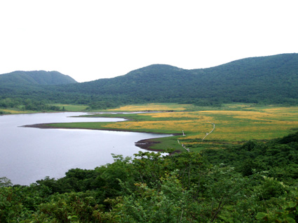 ![]() 道中の花 分岐の道標 登山道を下る道端には綺麗な花が顔を出してて気持ちが和む 分岐には15分ほどで着きました ![]() 猫魔ヶ岳への道 振り返り厩岳山 分岐を猫魔ヶ岳方面へ 途中で振り返ると下りてきたピークが遠くに見える! ![]() 分岐 猫目石 登山道 分岐を左に進むと猫目石です 大きな石で休憩を楽しむ三名の姿があり ここから先は悪路の下りだ! ![]() 猫目石より雄国沼 コシアブラが在りました 沼に係る水門 悪路を下りながら見つけたのはコシアブラです 今時期に新芽のコシアブラが在るとは不思議ですね! ![]() 立派なナルコユリ 左下に小さな蝶 沼が近くなると花の数も多く見られるようになる 中でも鈴をぶら下げたようなナルコユリは見事です ![]() 雄国沼 休憩舎 ヨウラク・・? 沼の縁を進み雄国沼休憩舎に着いた 急傾舎には多くの登山者や学生が所狭しと動く姿がありました ![]() 沼の辺にアヤメが咲いてました サクランボ 今時期に楽しみなのが沼の辺に在る熟したサクランボです 手を紫色に染めながら口に含む。。。 沼に咲くニッコウキスゲ(6月28日撮影) ニッコウキスゲを沼の周りから遠望を楽しんだ 時間に制約されてるため沼まで下りて木道探索を楽しむ 余裕が無いのです そこで数日前に友達の一匹さんが撮影した一枚の写真を借りました この鮮やかな色合いと景色は接写でないと迫力が出ません 一匹さんご提供有り難うございました m(_ _)m ![]() 遠望のニッコウキスゲ 金沢峠 金沢峠を南へ進み 猫魔への分岐を左にとると周回コースも最終コーナーです 黄金色に染まる沼を見つめ藪道へと突き進んだ・・・笑 ![]() ヤマボウシ アジサイ ツツジ 道中の花ー2 ![]() 道中の花ー3 ![]() 道中の花ー4 登山道は藪 右端の写真をごらん頂くとお解りのように 道は埋まり笹やシダ・ツタなどで背丈ほどあります 蒸し暑い中で道なき道を進むのは感心しませんね 此処が一番の難所でした 休憩時間にマヤタケ山へは辛うじて時間内に帰ることが出来ました ・・・SEI・・・ 戻る |