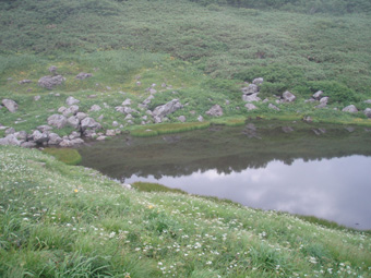 広大な草原にはお花畑在り小さな沼在りと視界が広がり疲れも吹っ飛んだ