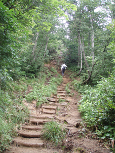 ![]() 駐車場より(八海山) 所用で新潟に行った 片道 三時間半は何もしない手はないと・・・思い 簡単に登れる山はないかなと検索すると 在りました ゴンドラを利用して登る山が「八海山」です 山頂駅に着いたのが午前10時過ぎ雨も降ってる しかし先週も山はお休みストレスが溜まらない様にと自分に言い聞かせ登った・・・(笑) 八峰超え手前にある千本桧小屋に着いたのがお昼時間です 特別何も持たないで来てるため小屋でビールを求めてソーセージをツマミに頂く 休憩もそこそこに下山開始 その時響く音(ゴロゴロゴロー)雷です これはノンビリしてられないと早足で下山 女人堂を過ぎた中りから大粒の雨が降り出した 登山道は川と化し 泥や小石を運ぶ流れが足下を襲う! 土砂降りの雨の中を追われるようにゴンドラ山頂駅に着いた 山頂駅には雷でゴンドラが動かないために多くの登山者が足止めです 午後二時にゴンドラが再開 早々に乗り込み八海山を後にしました 雨の中を登った寄り道山行きが無事におわる。。。 ![]() ロープウィエー 山頂駅より山麓を望む! ![]() 展望台にある石像 登山道 ![]() ガスが動く 登山道に施された渡り板 ![]() 女人堂の石塔 道標 ![]() 可愛い案内板 ![]() 薬師岳 ![]() 三本桧小屋 八峰がガスの中から浮かぶ ![]() 土砂降りの雨で登山道が川と化する ![]() 下山と同時に八峰が曇り空の中に現れた! 戻る |