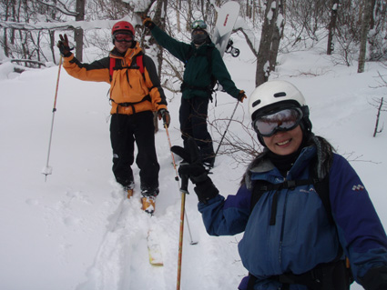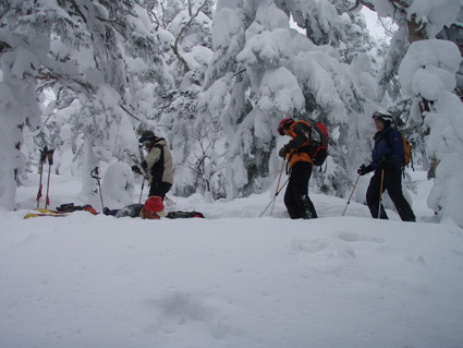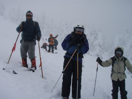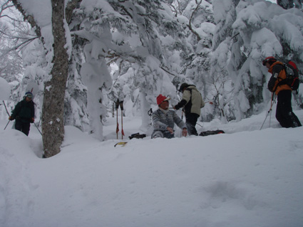 ![]() 折り返し地点の風景 10日は西大巓(南西尾根)に行く・・・ スタートが遅く山頂手前で南西尾根に入りました 生憎の曇り空だったが今年初めてのツアーを楽しめました 夜はお決まりの山小屋宴会です ツアーに参加のメンバーが得意の料理を披露した Hosakaさんのココナツ料理やSyouさんの本場喜多方ラーメン Nabeちゃんのガーリックパン&Gonちゃんの鍋料理を頂いた お酒も花泉の辛口・濁り生酒などを飲みほしました。 ![]() ゲレンデTOPより 余裕のGonちゃん 曇り空で展望は期待できないが 今年初めてのスキーツアーです 山肌の軽いラッセルで前進だ! ![]() ラッセルは20cm位 良く見ると一人寝てます(分かりますか・・笑) 雪も軽く先頭を行くHosakaさんが快調に飛ばします 後方を行くSei 歩きやすいトレースの跡でもついて行けないのは何故か・・? ![]() 起き上がりました(雪まみれです) 休 憩 雪の中は気持ちが良いのか先ほどまで横たわってた中央の人物が雪まみれで立ち上がる スタートが遅かった私達は標高1890mで折り返すことにした 風よけの場所を見つけて昼食です いつもなら最初の行動はビールです しかし今日は呑む姿を見る事が出来なかった (寒いので在ります)・・・笑 ![]() ツリーの出来具合 之から下ります 昼食を済ませた私達はシールを外して滑降開始です ![]() Nabeちゃん Nobu君 ![]() Gonちゃん Hosakaさん ![]() Nabeちゃん Haruさん ![]() ネコヤナギ 間もなくゲレンデへ 山頂まで行かずに折り返したためか予定位置まで西に進むことが出来ない コースとりが悪く適度な林間を滑ることが出来ませんでした。 ![]() ゲレンデハアウス前で! 山小屋宴会 (Gonちゃん・Haruさん・Nobu君・Nabeちゃん・Hosakaさん) (*^_^*) 無事に下山すれば今日の出来事は全て楽しい思い出です 寒いときには暖かい部屋でビールを呑むのが一番だと誰が言ったか早々と山小屋に向かった Nobu君〜Haruさん〜Gonちゃん〜Hosakaさん〜Nabeちゃん 楽しい一日だったね! 明日も宜しく・・・ ・・・Sei・・・ 戻る |